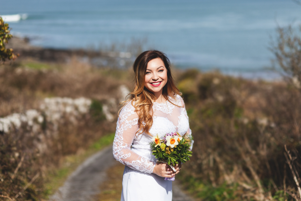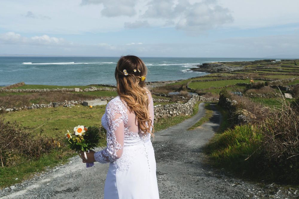 The ceremony location is a dream come true Mainistir Chiaráin – the ancient monastic lands of St Ciarán’s Monastery, Mainistir, Inis Mór. Performed by Dara Molloy, Celtic priest.