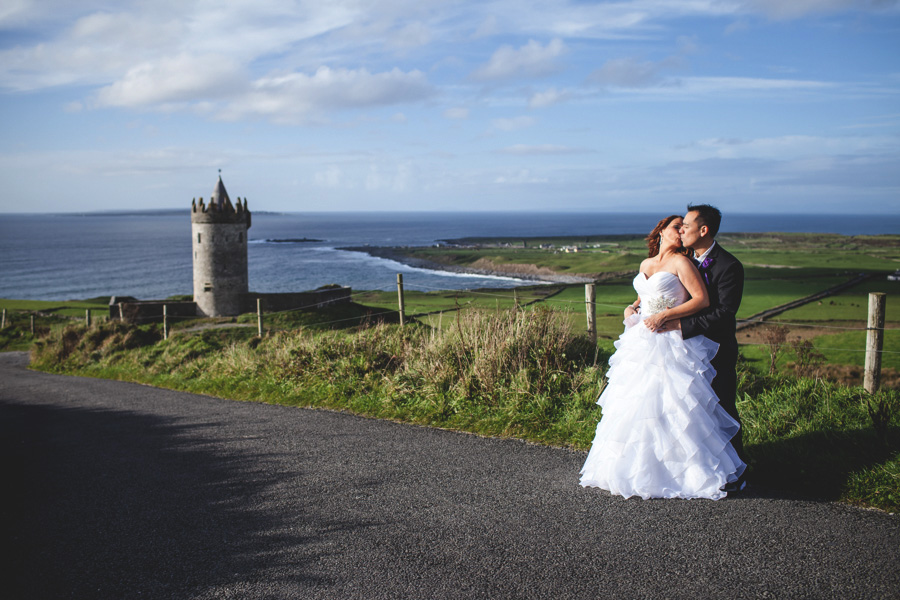 Now, here’s a wedding we don’t see everyday! Jennifer and Johnny travelled from Maryland, USA to marry in a country they had never visited before! The couple had a Pagan ceremony and a very intimate wedding of only eight guests overlooking a beautiful castle at Ballinalacken Castle, Doolin, County Clare.