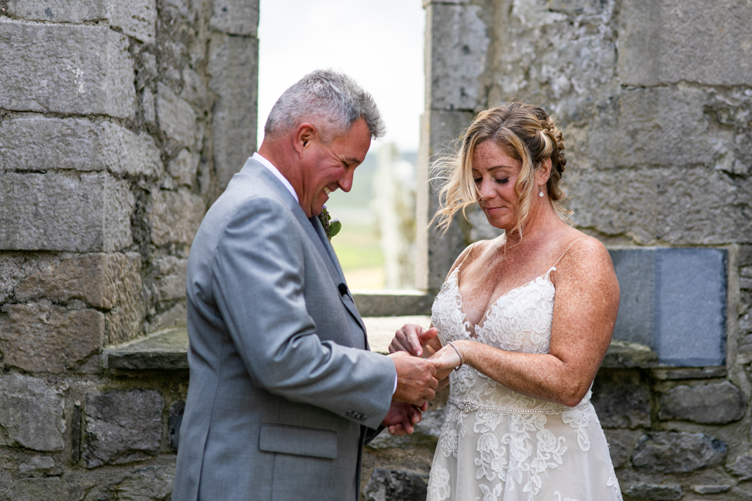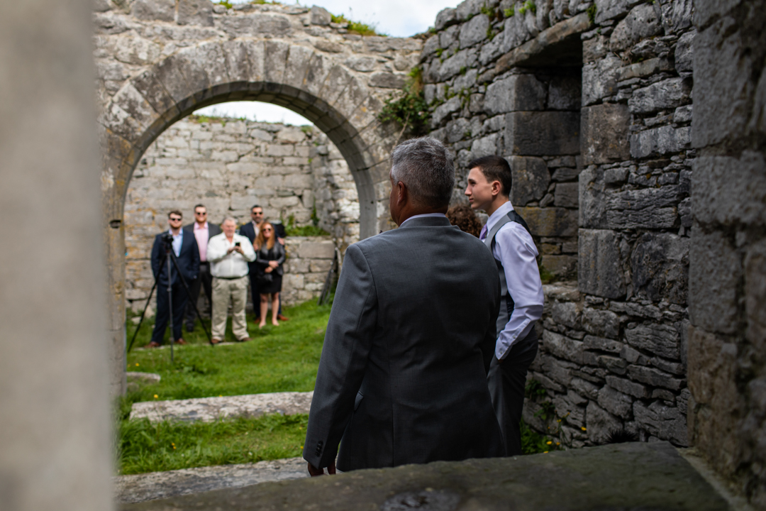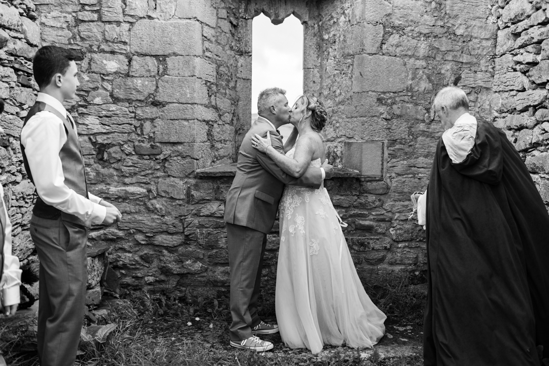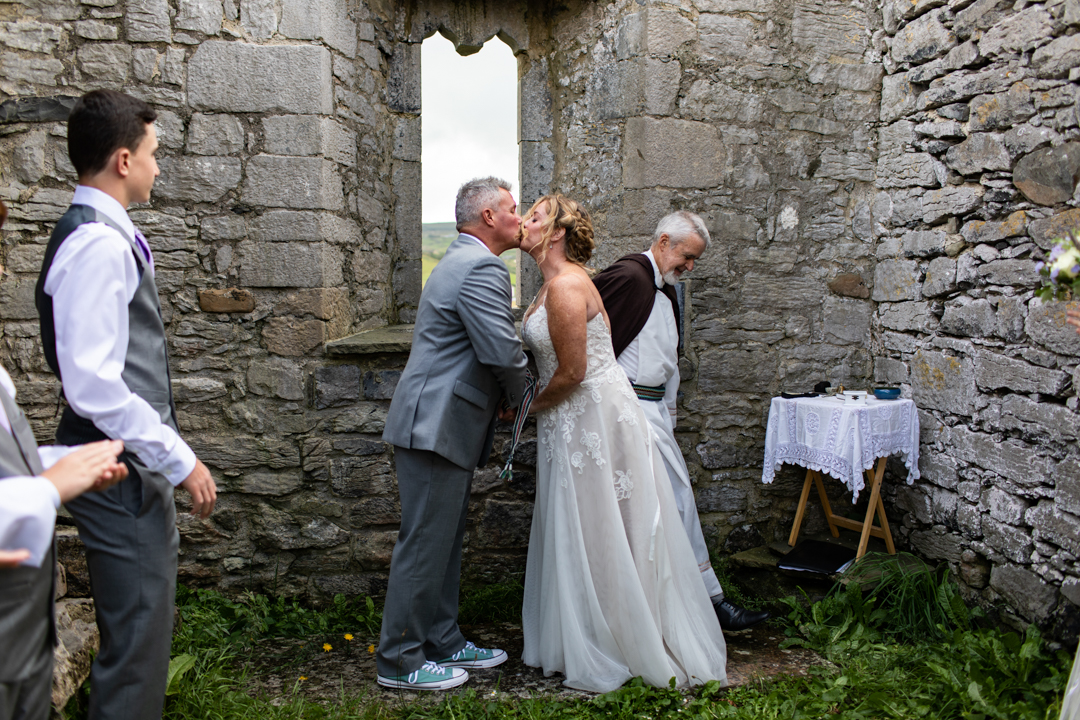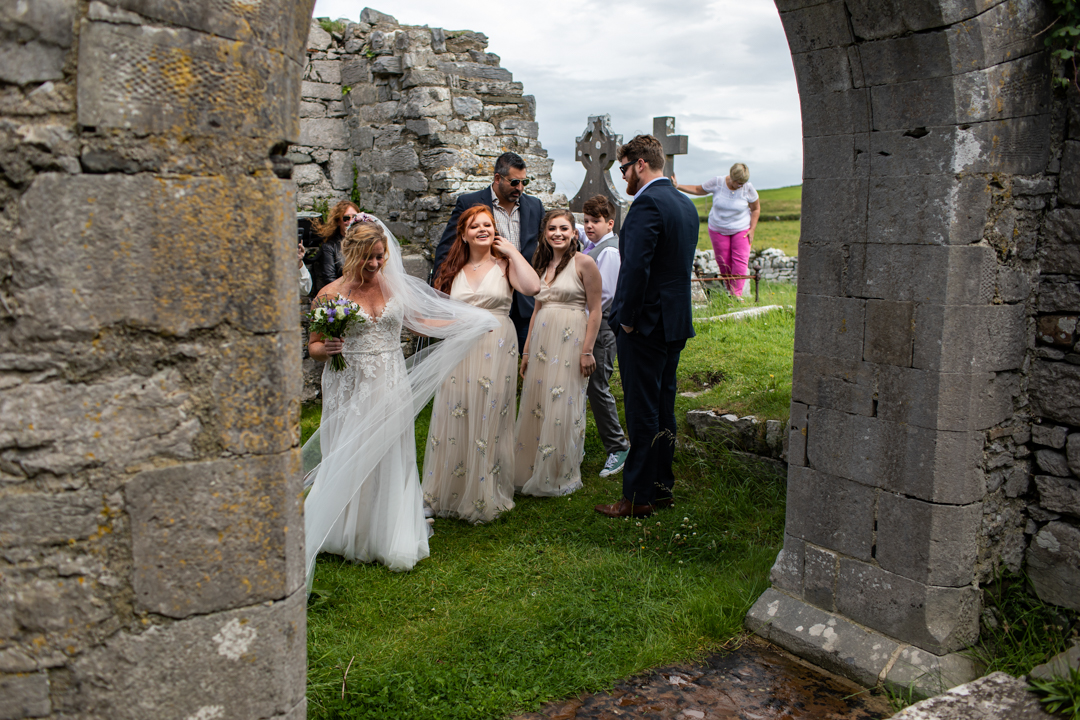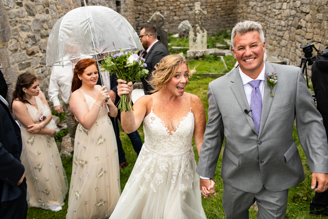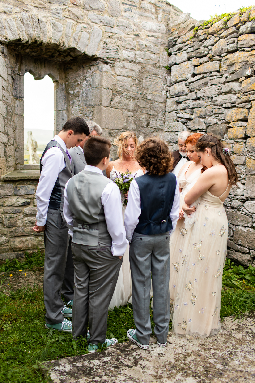 Niall Hughes, owner of The Sea View House, where we were staying, suggested we have the ceremony at the ruins of an old church. He quickly showed me pictures of the site on his phone, and I knew instantly that the vibe would be perfect for us. It was the most beautiful location. It rained a tiny bit, the sun came out, our children were happy, and our friends can not stop talking about it!
