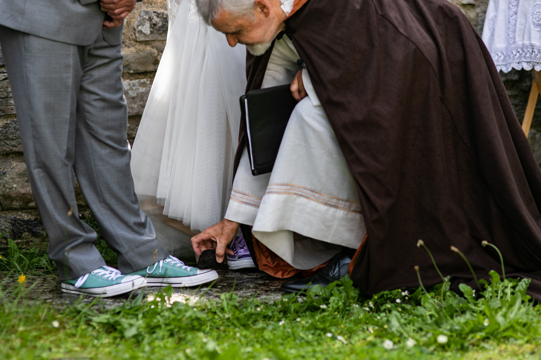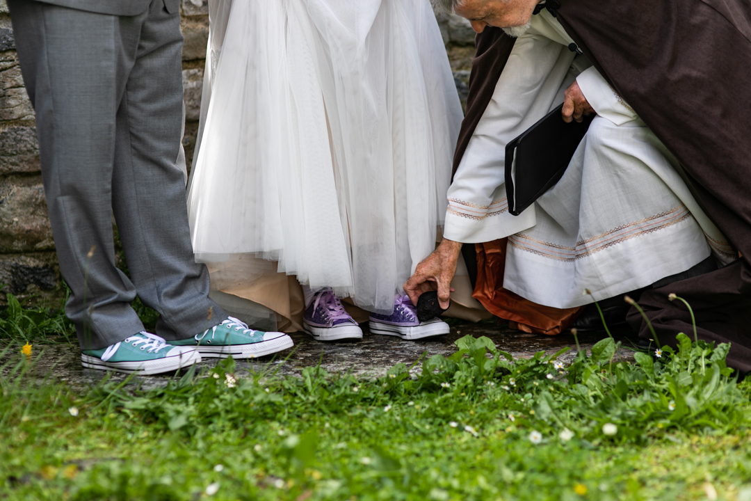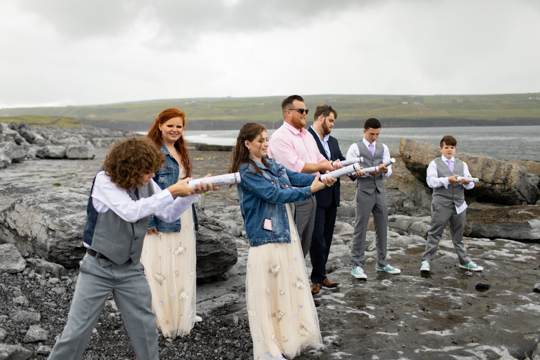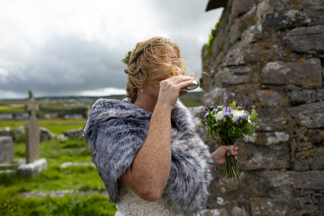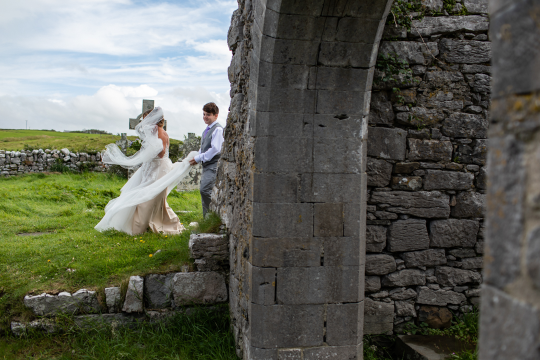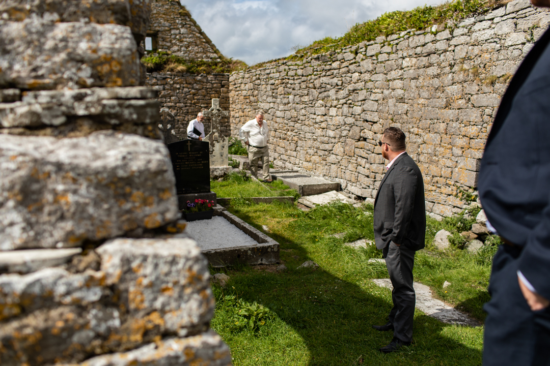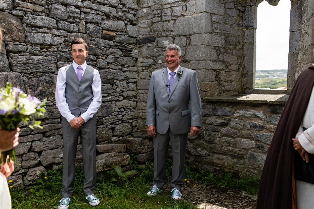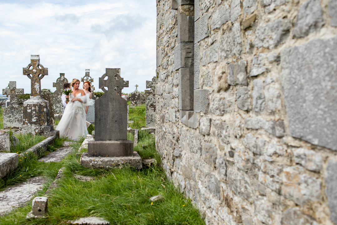 Niall Hughes, owner of The Sea View House, where we were staying, suggested we have the ceremony at the ruins of an old church. He quickly showed me pictures of the site on his phone, and I knew instantly that the vibe would be perfect for us. It was the most beautiful location. It rained a tiny bit, the sun came out, our children were happy, and our friends can not stop talking about it!