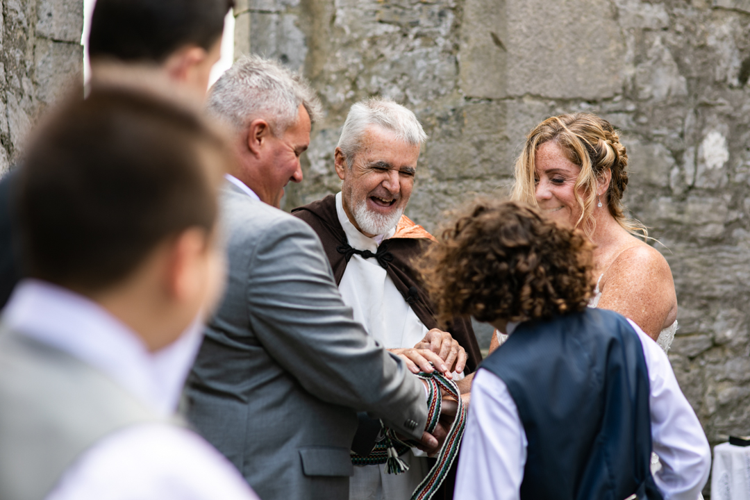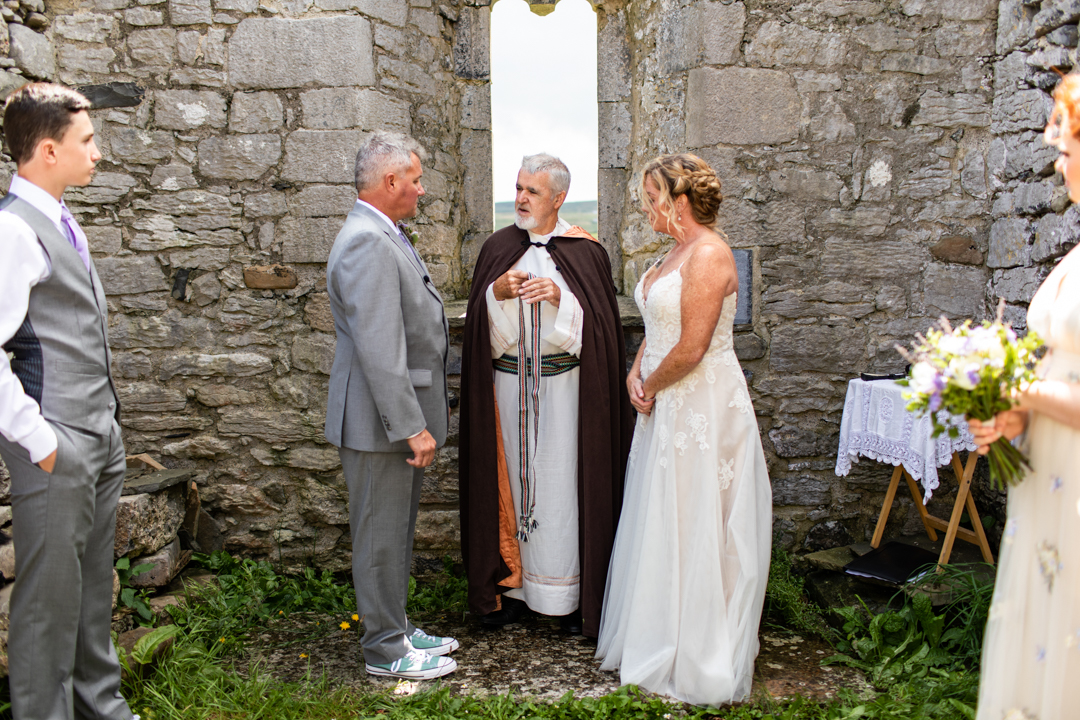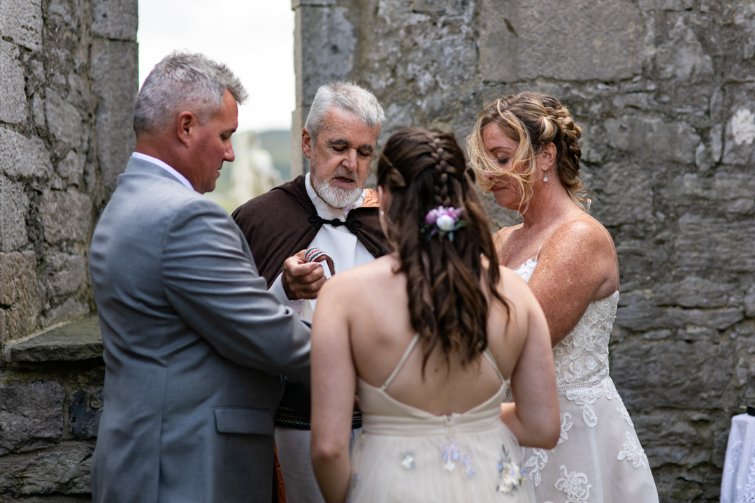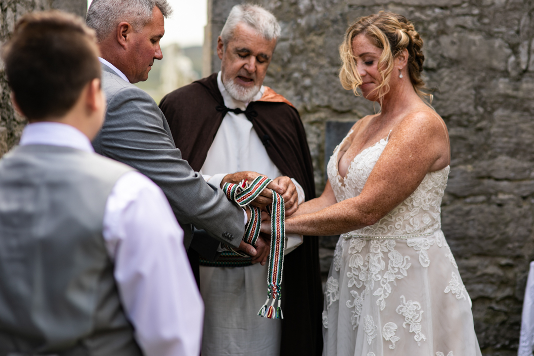 Celtic Handfasting Ceremony at Killilagh Church Ruins. Destination Wedding In Doolin , Ireland Ch & E