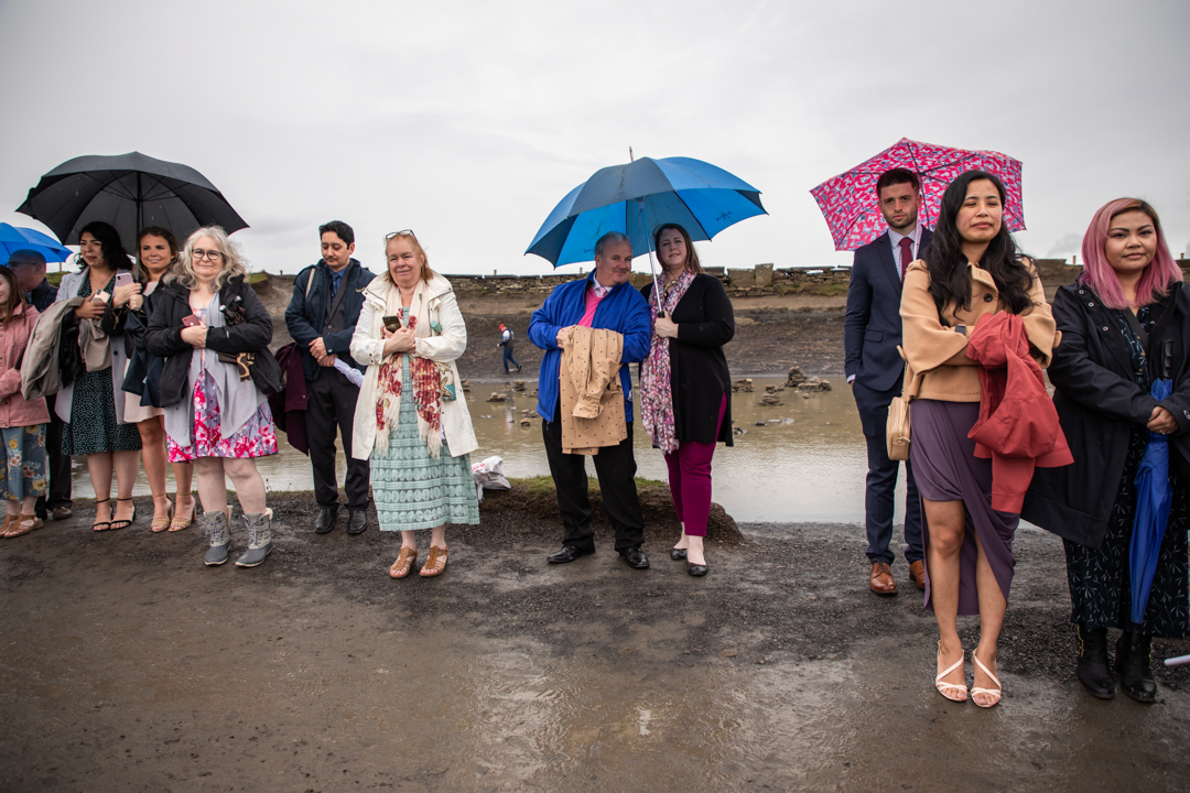 It was eventful. Nicolle lost her voice and squeaked through the whole day. The night before the maid of honor burned a hole in Nicolle’s veil and the maid of honor freaked out until she could get it fixed. The owner of the bed and breakfast we were staying at knew someone who just made her own daughter’s wedding dress and was able to fix the veil with no problem. Lastly, it rained all morning and all afternoon and we thought we were going to have to change the venue but we decided we had come all this way and we were going to get married on cliffs even if the rain was going to drench us. Well, the rain stopped right when we got there for the ceremony and held right until we left for the reception.