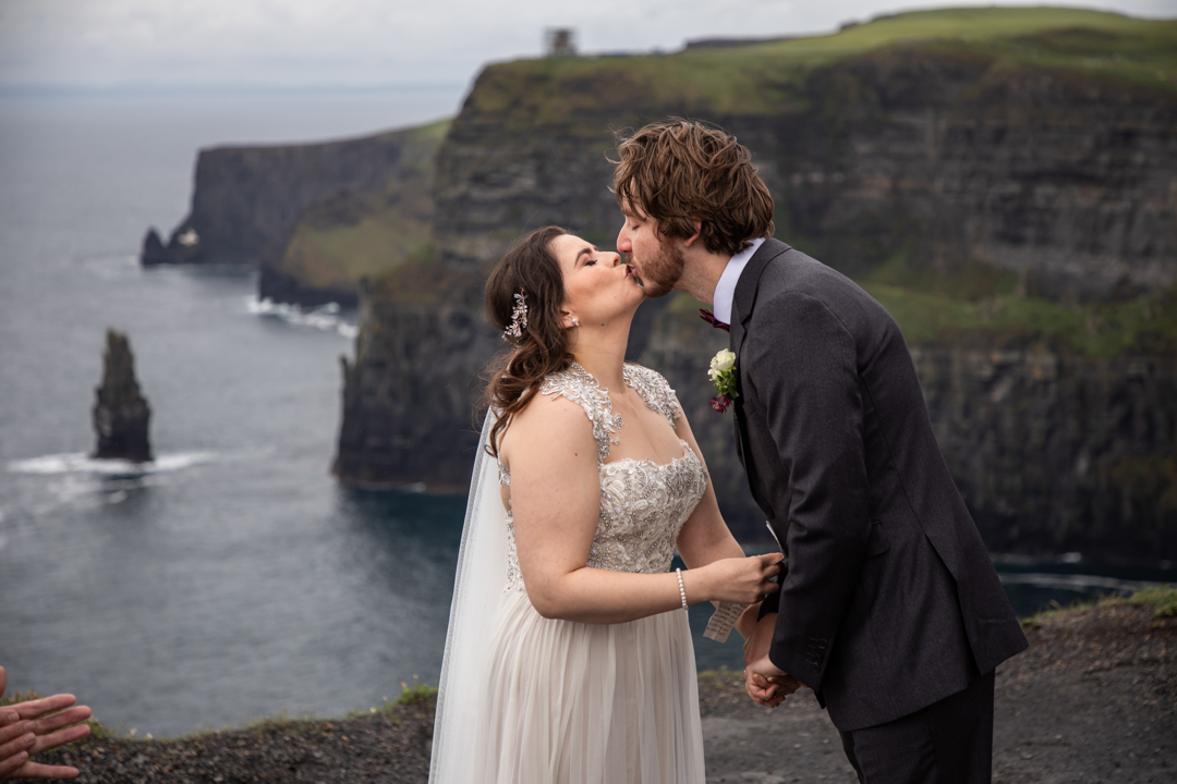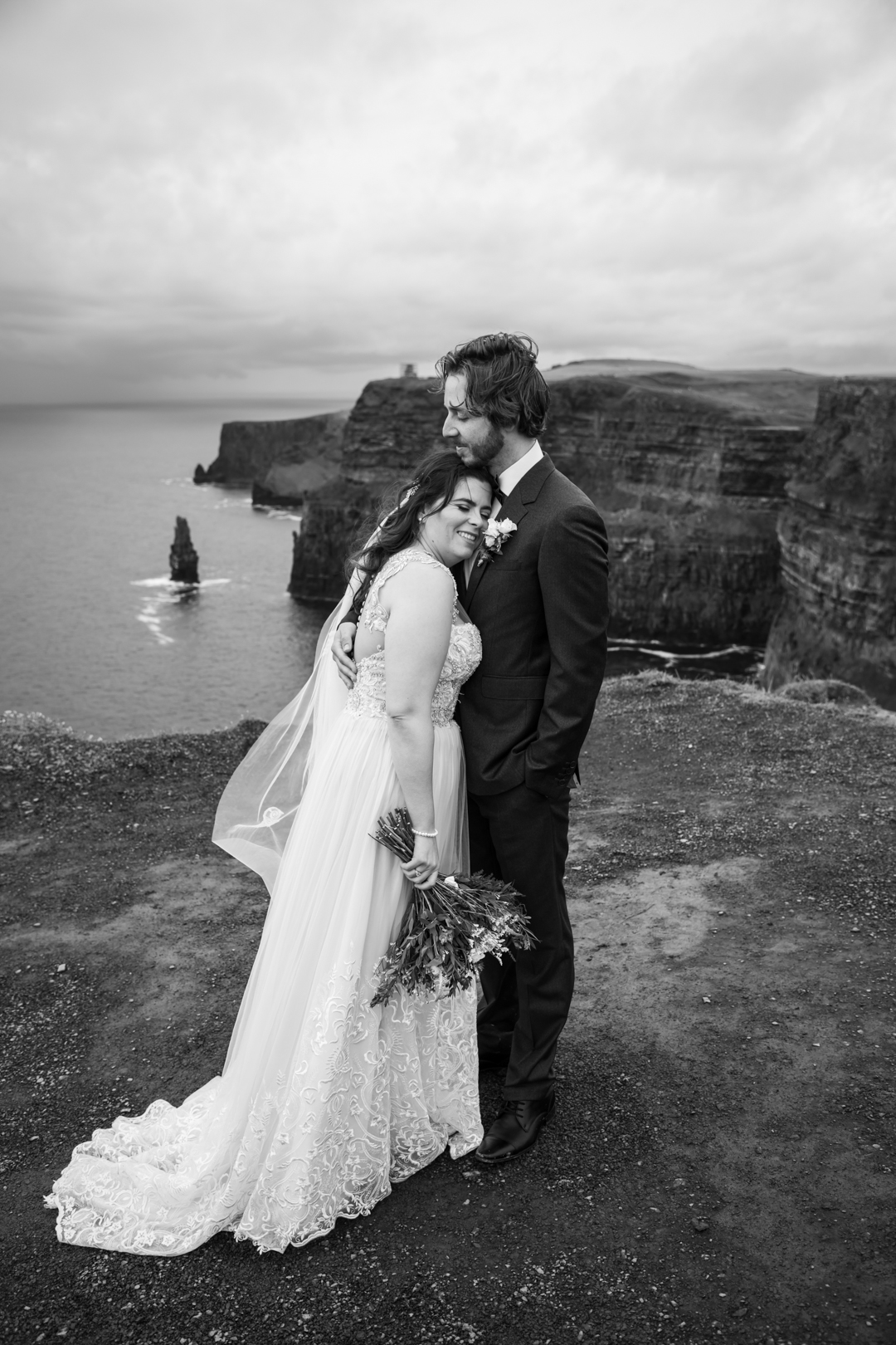 - cliffs of moher, wedding Ireland, irish bride, bride and groom, cliff shot, wild atlantic wedding, irish wedding, irish wedding photographer, wedding at cliffs, cliffs of moher bride, Ireland, destination Ireland, cliffs of moher photographer, Elope in Ireland, cliffs of Moher Ireland,
