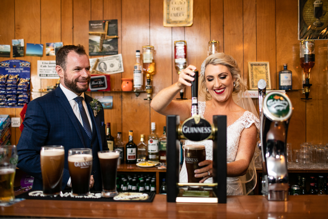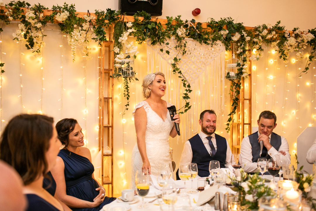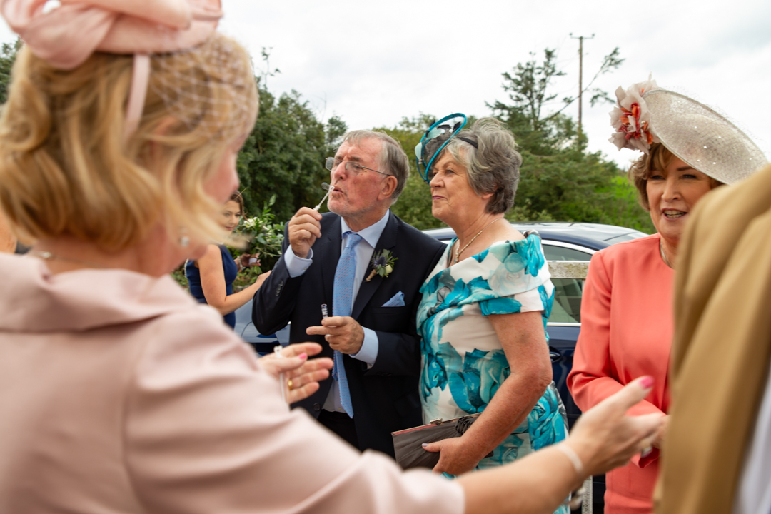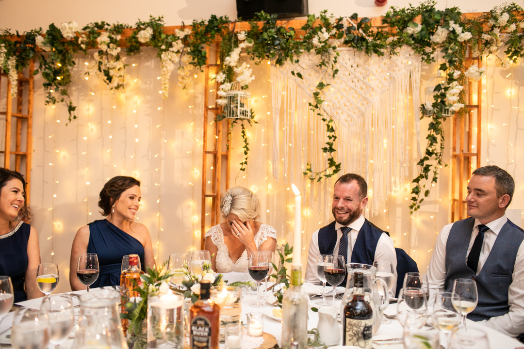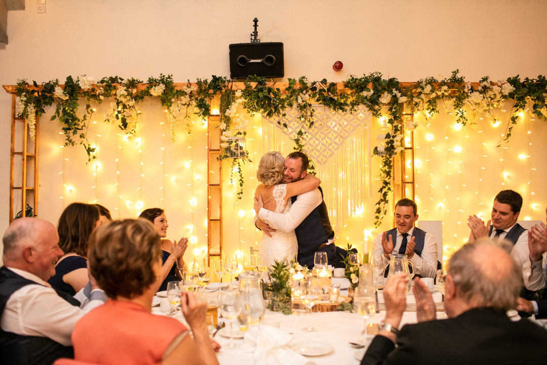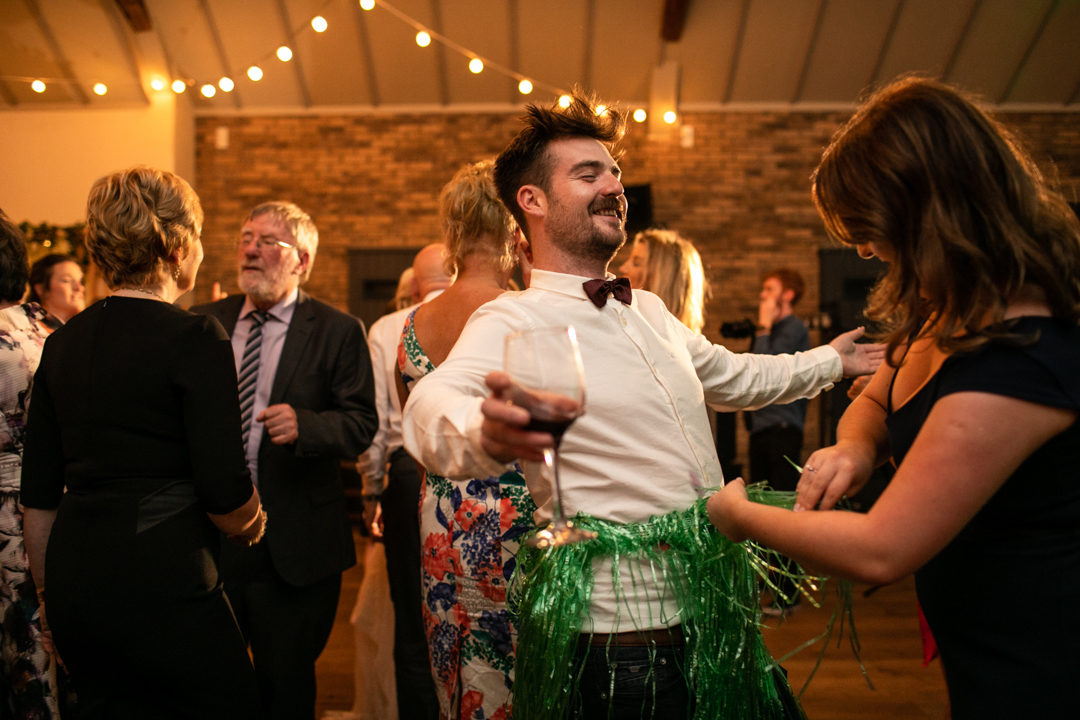 Take five minutes together after your ceremony to take a breather. You won’t regret all the extra bits! We did hangover kits it was definitely a bit of work but so worth it as our guests got great fun out of them. Get all little jobs done two weeks before as there is always more!! Invest in your band, we had Spring Break who were phenomenal, together with air guitars, and the contents of the school drama box made for some seriously uninhibited dance moves and fantastic photos. Actually the music in general we felt was very important in creating atmosphere. Nicola McGuire sang at our ceremony and it was incredible she has such a beautiful voice and was so helpful when it came to choosing our music. It is also lovely to get friends and family involved in the ceremony and throughout the day. My friend Eibhin sang at the ceremony and it was just gorgeous, she sangFleetwood Mac Everywhere. My friend Ruthy read a beautiful reflection which all added to the special atmosphere of the day.