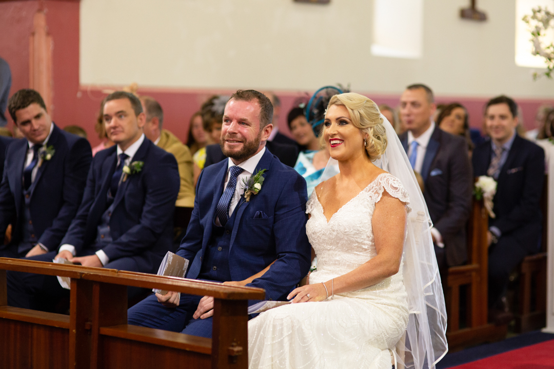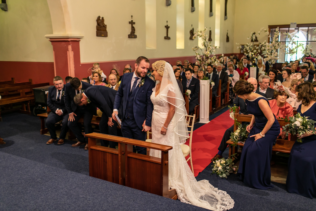 The day went so quickly and everyone tells you to try and take a few minutes out to try and take it in. This is good advice!!We both had great fun the morning of the wedding, I spent the morning with my mum, sister, besties, and Mike’s mum Anne beautifying ourselves, while Mike and the lads went to Clahane Beach for a dip in the Atlantic. My brother James drove me to the church with my dad which was really special. But seeing Mike at the top of the aisle was definitely the highlight! We also really enjoyed our time getting our photos taken up on the cliff it was a lovely time with our friends in truly stunning surroundings. The whole day was just perfect, all the people we love the most in the world in one room helping us celebrate our special day