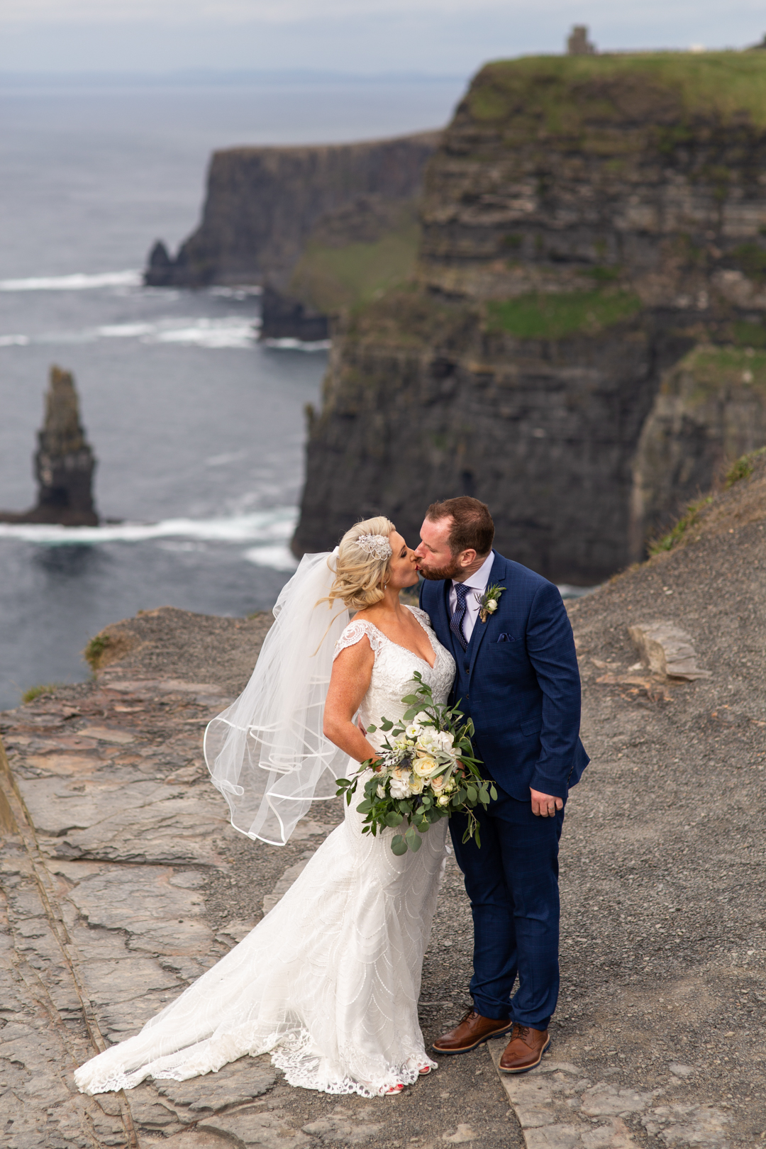 - cliffs of moher, wedding Ireland, irish bride, bride and groom, cliff shot, wild atlantic wedding, irish wedding, irish wedding photographer, wedding at cliffs, cliffs of moher bride, Ireland, destination Ireland, cliffs of moher photographer, Elope in Ireland, cliffs of Moher Ireland,