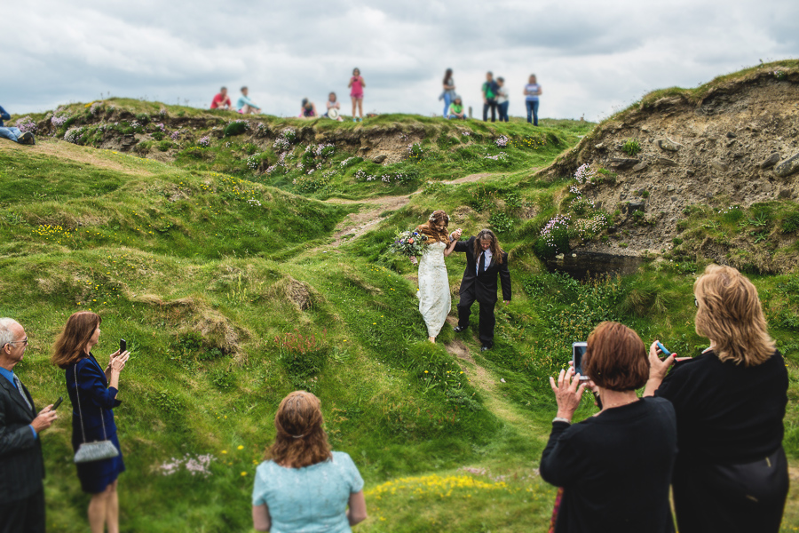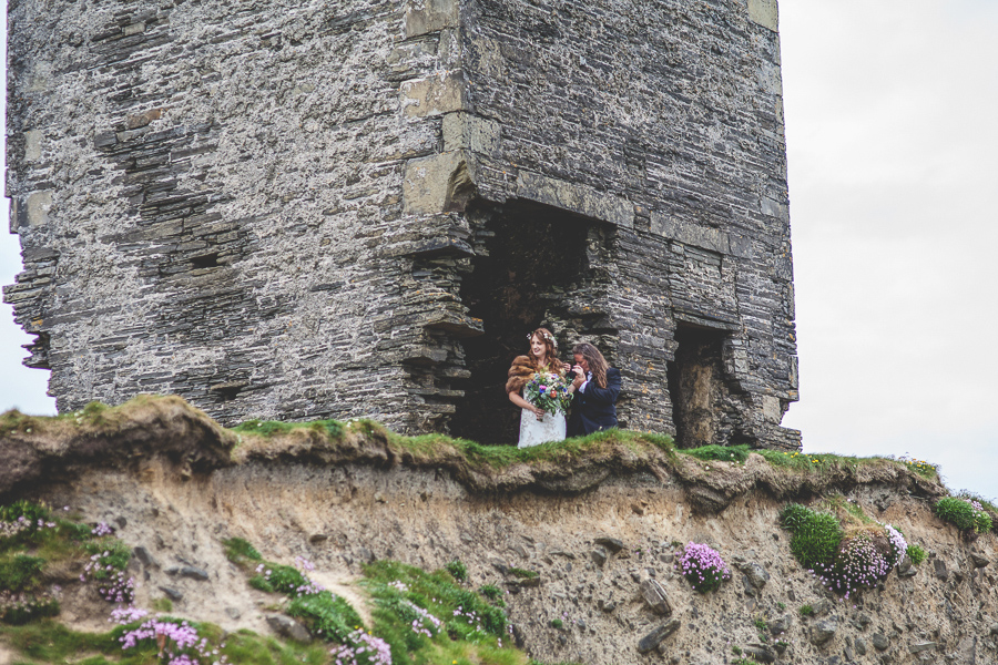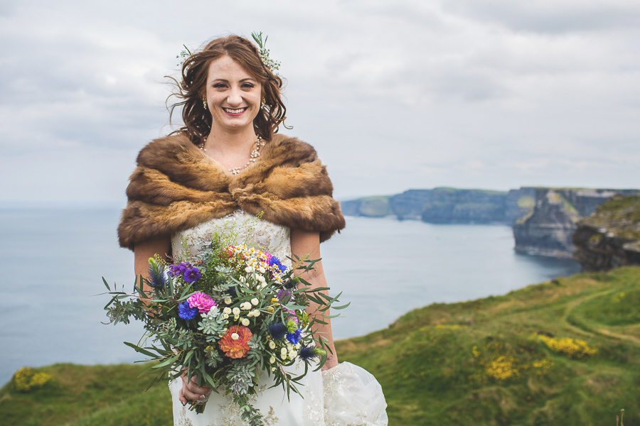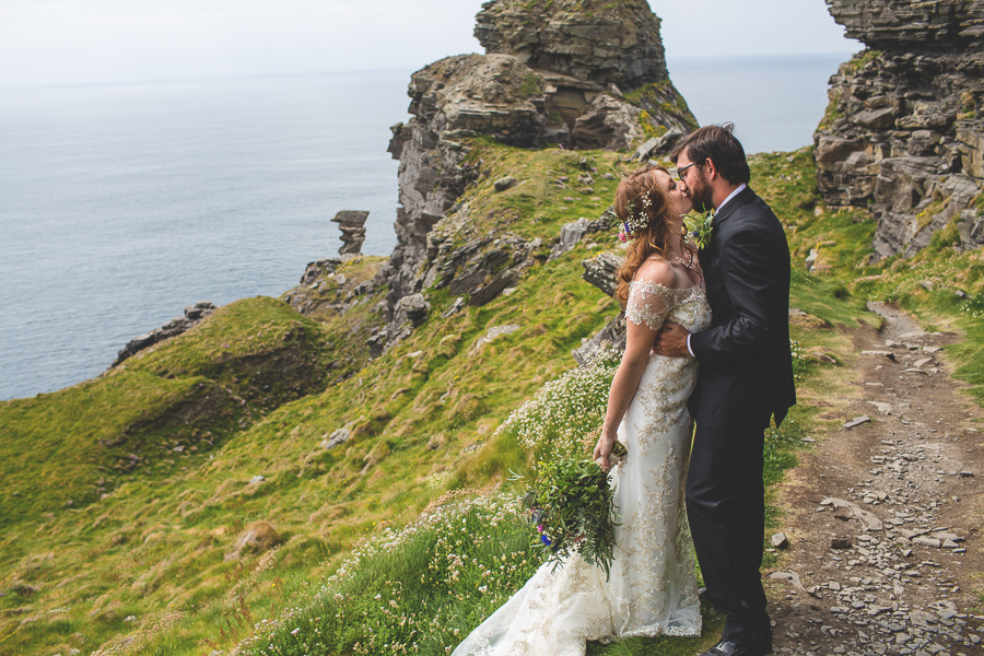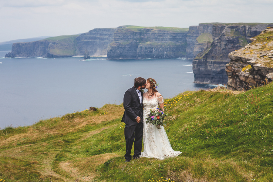 We got married on a cliff that is considered (by at least the Irish) to be the eighth wonder of the world. In all seriousness though: I’d wanted to see the Cliffs of Moher for as long as I can remember. I used to have dreams about them. I even painted them. I’m an American, however I was raised to be proud of my Irish decent. I heard many stories of drunken uncles pounding their fists on old wooden tables over a pint. I also grew up in a family full of high-strung redheads. So when we tried to elope and no one accepted that, we ended up having 30 of our closest family and friends travel abroad to watch us say our vows in a place that is anchored in my heart (and now Jake’s). I think the feeling- the emotion and love- and the trip that we took together with so many of our loved ones is what made the venue so special. That and the fact that Hotel Doolin was the best place we stayed in all of Ireland and Northern Ireland! A place where they make you feel welcome no matter how high-maintenance you are, or even if it’s the wee hours of the morning. Everyone that we came into contact with was nothing short of spectacular. The same can be said for the food- they could employ a worse chef and still get 5 stars. They also always have fresh cut wild flower arrangements everywhere, which is a detail I absolutely loved. During cocktail hour, Paul (our event-coordinator) even made sure they cut fresh mint from their garden for our mojitos. Really and truly- the entire town of Doolin from it’s B&B’s to it’s ridiculously scenic views is second to none.