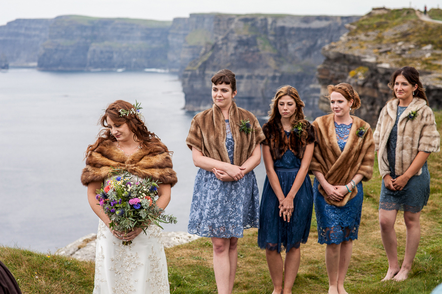 Bridesmaids: BHLDN, faux furs were found on eBay, jewellery from I & RFB Silversmith in Doolin