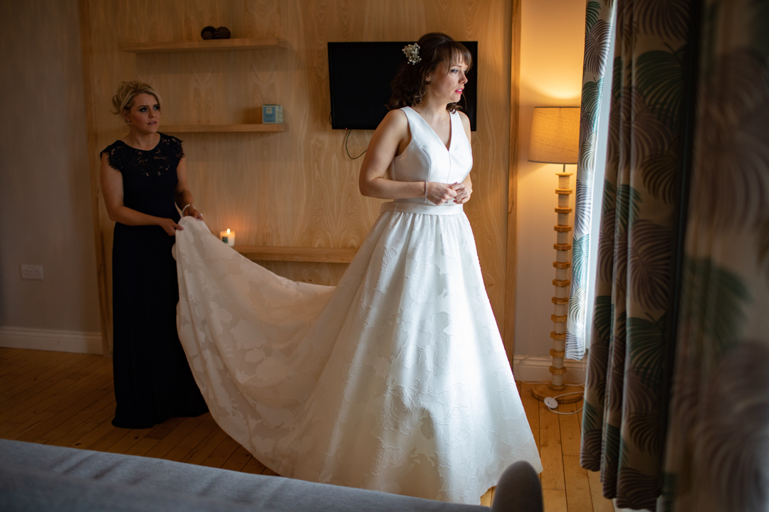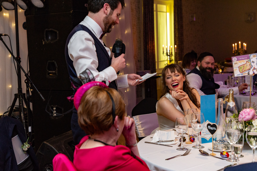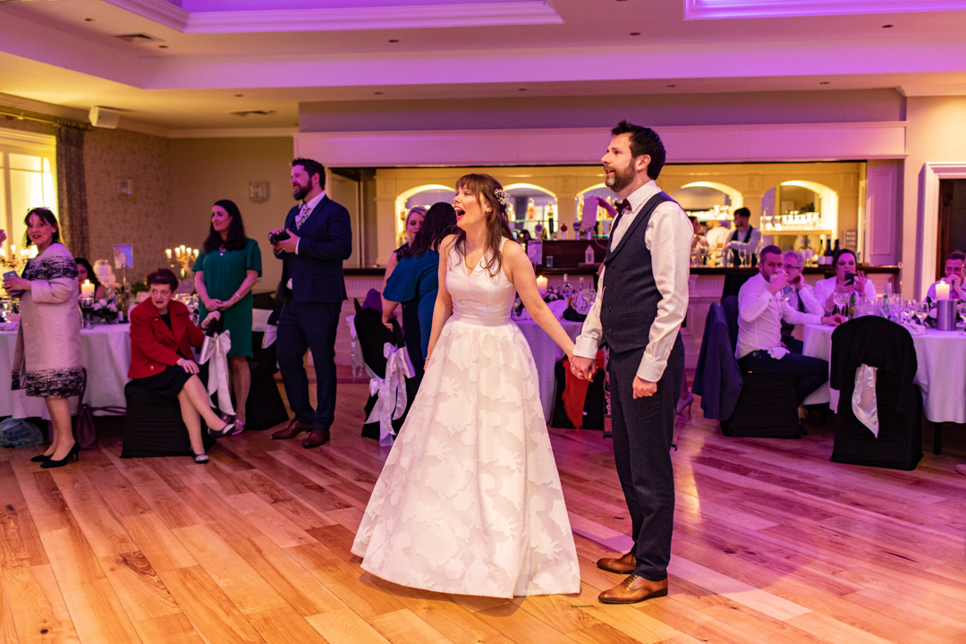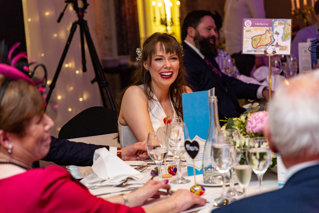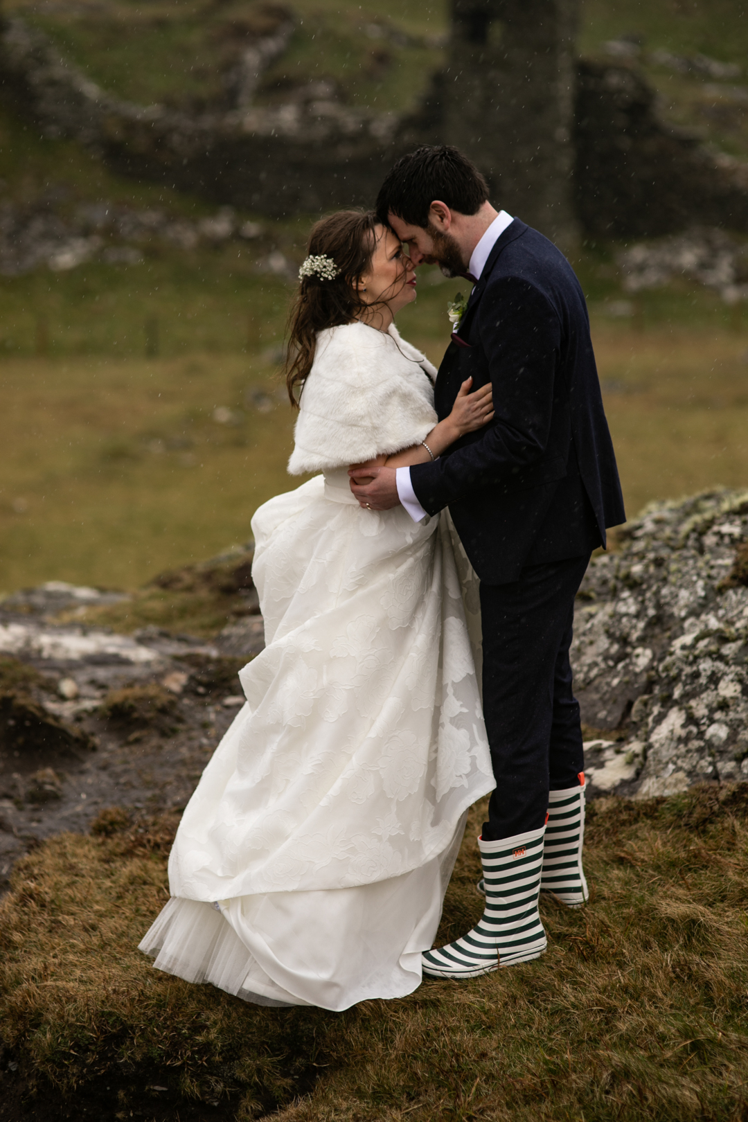 Our guests made the day. They were so positive, enthusiastic and happy for us. They brought such a lovely energy to the day and they had so much fun. During the meal we looked around at the tables of people laughing and we said to each other that we wished we were at this wedding rather than it being our wedding. It was also special because it was only people who we really wanted there as opposed to a huge wedding of acquaintances. Our photographer, Olga also helped make the day. Our happiest memories of the day are with Olga on the side of a cliff in the lashing rain. She was so enthusiastic and positive and that definitely rubbed off on us.
