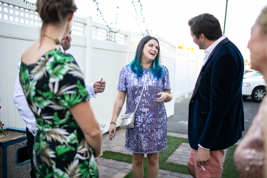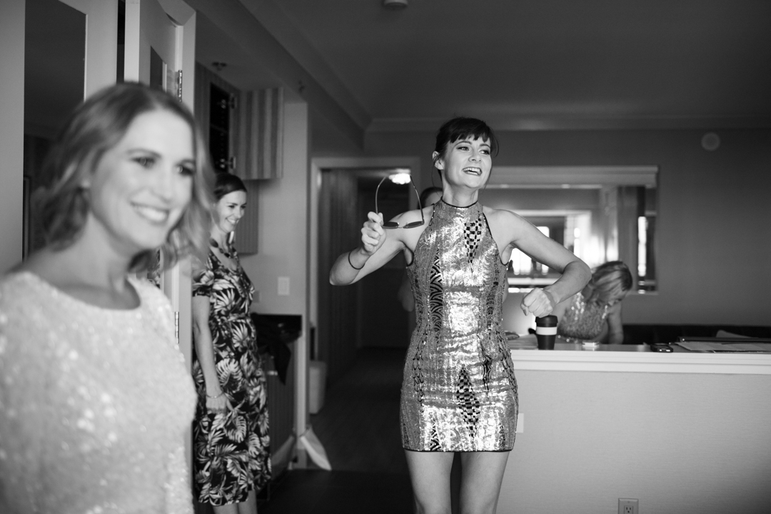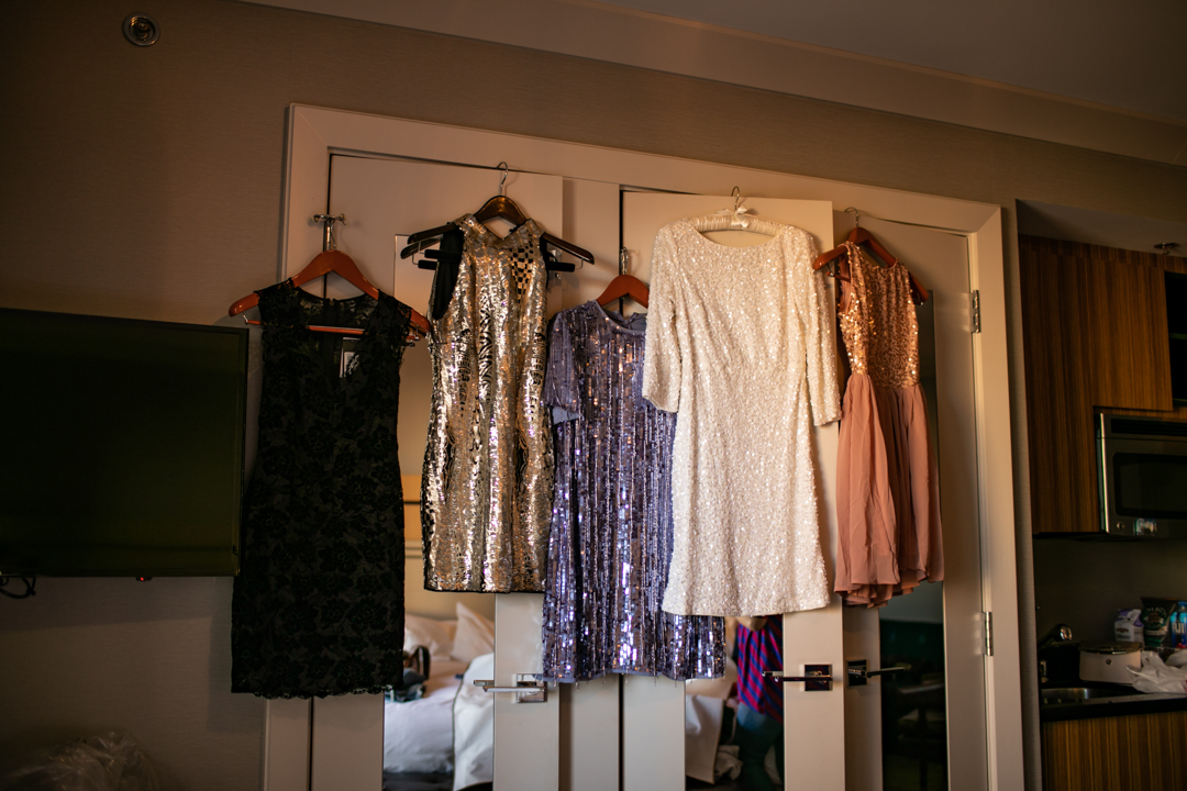 • Bridesmaids dresses: Girls sourced their own sequin dresses