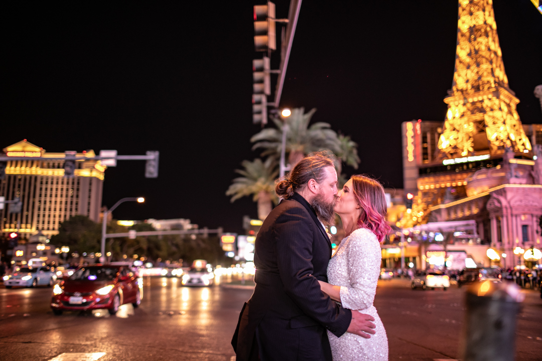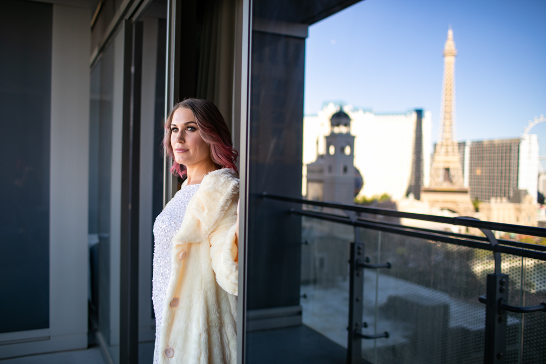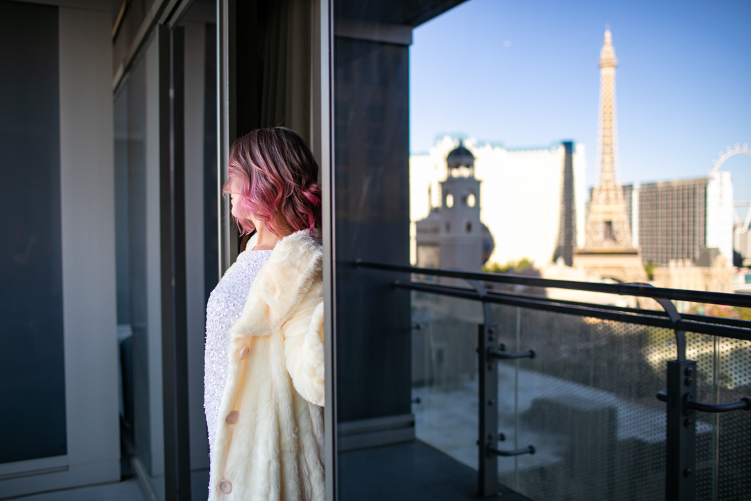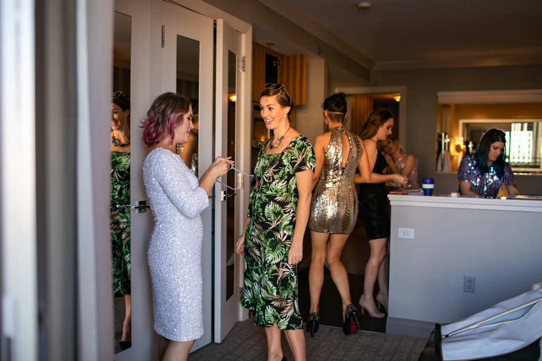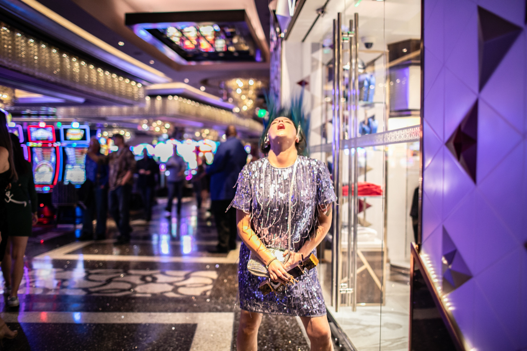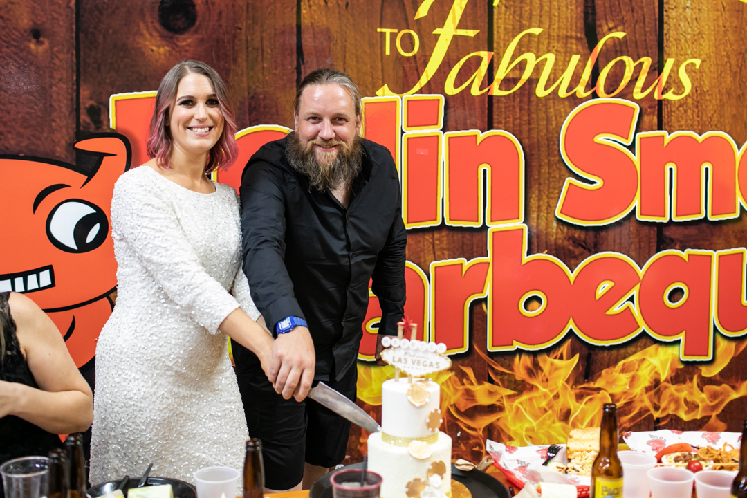 Melanie: All of it. I loved every minute! From breakfast in bed with my husband to be, to getting ready with the girls at the Spa, to strutting around in our Spanx in the hotel room! The limo drive with my super gorgeous bride tribe to what only can be described as the quickest and funniest chapel service EVER…marrying my ‘Stefawn’…. To Rollin Smoke BBQ – laughing, eating and the wonderful speeches, to partying in our hotel room before hitting the casinos and bright lights of Vegas! And of course having fun with Olga while she worked her magic behind the camera capturing every single moment.
