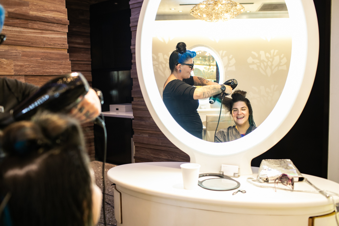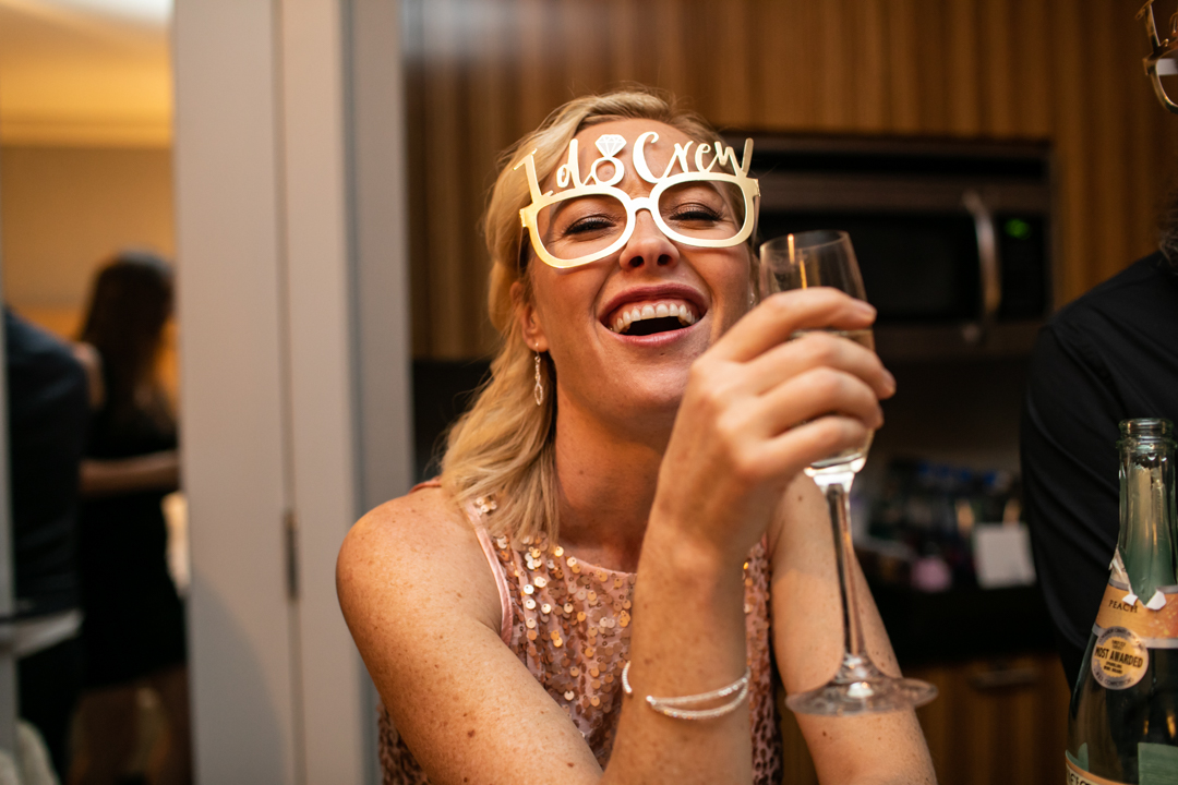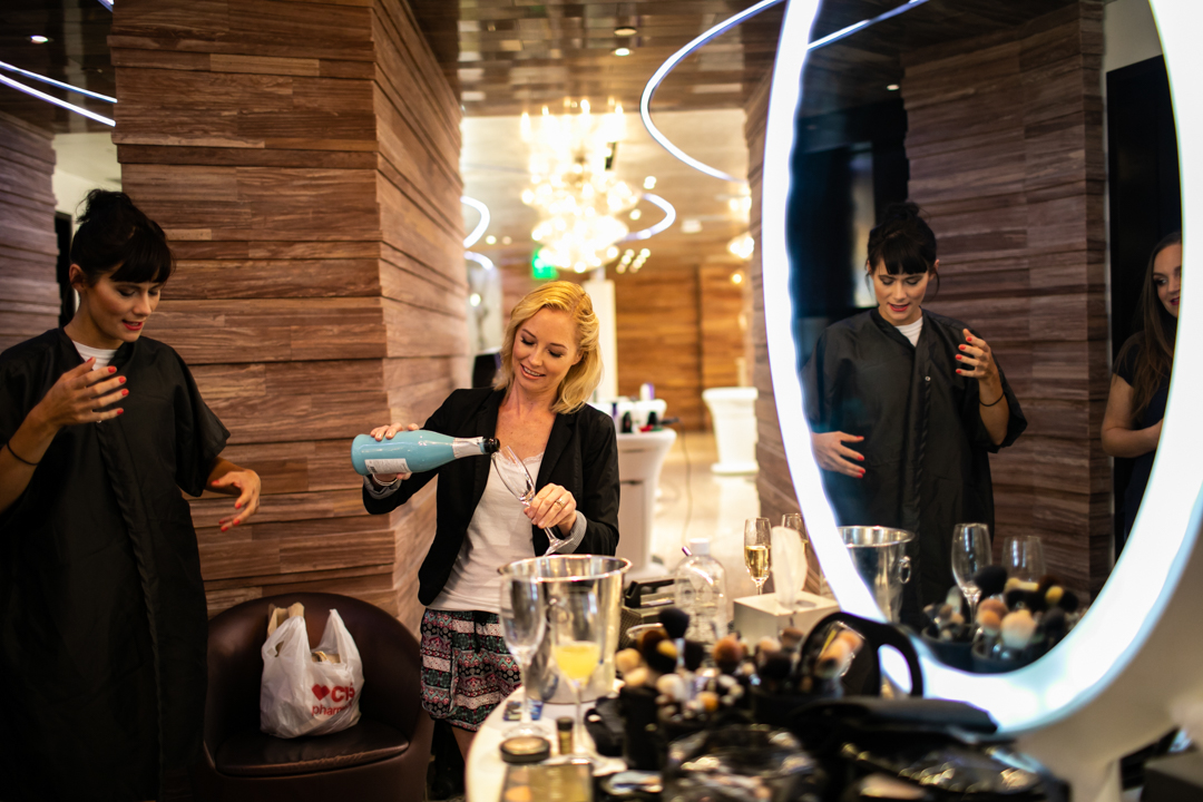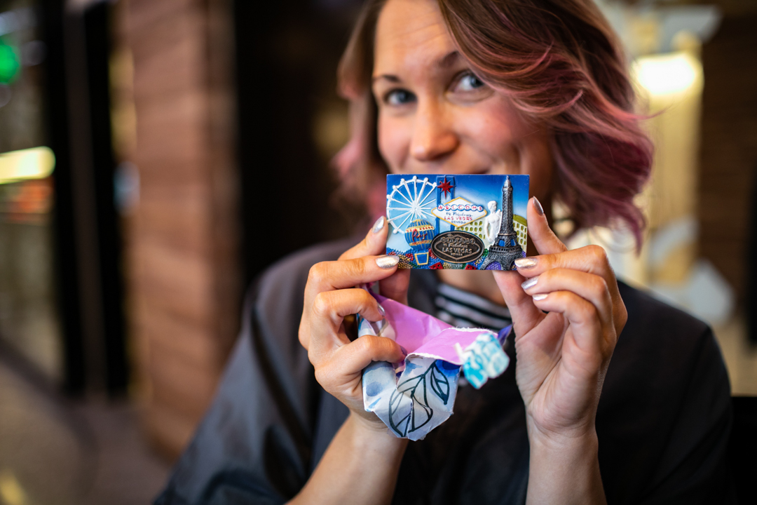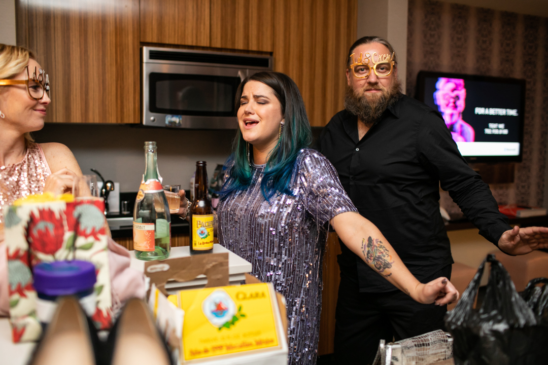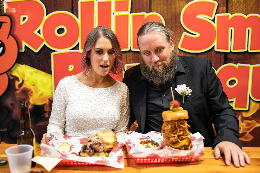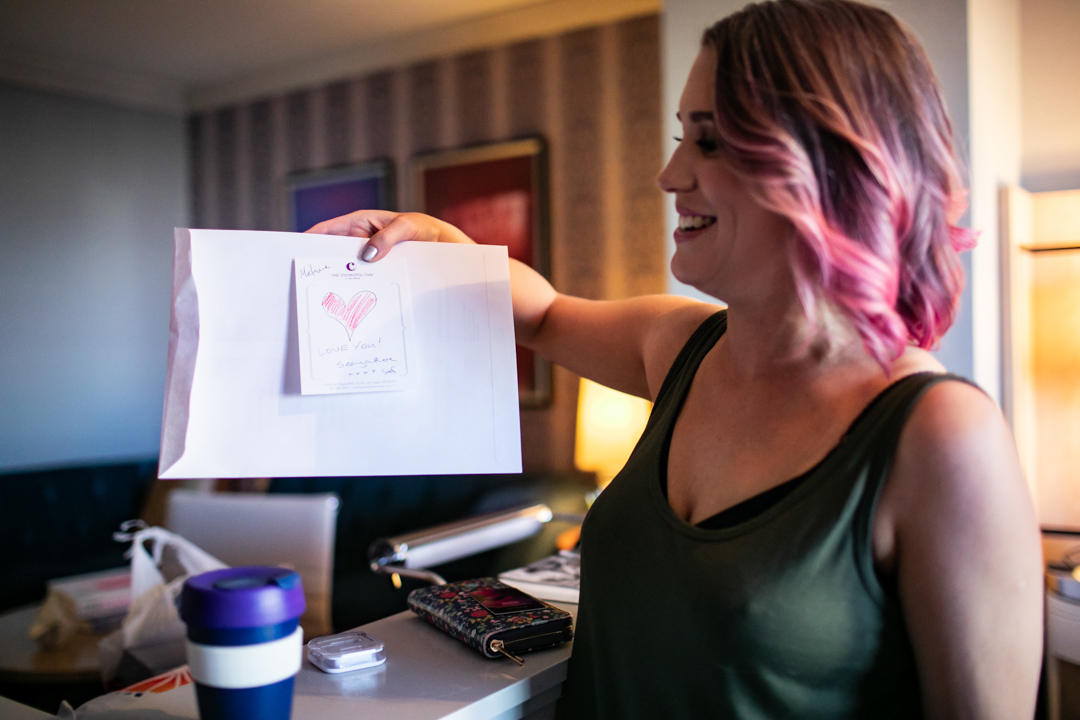 Melanie: All of it. I loved every minute! From breakfast in bed with my husband to be, to getting ready with the girls at the Spa, to strutting around in our Spanx in the hotel room! The limo drive with my super gorgeous bride tribe to what only can be described as the quickest and funniest chapel service EVER…marrying my ‘Stefawn’…. To Rollin Smoke BBQ – laughing, eating and the wonderful speeches, to partying in our hotel room before hitting the casinos and bright lights of Vegas! And of course having fun with Olga while she worked her magic behind the camera capturing every single moment.