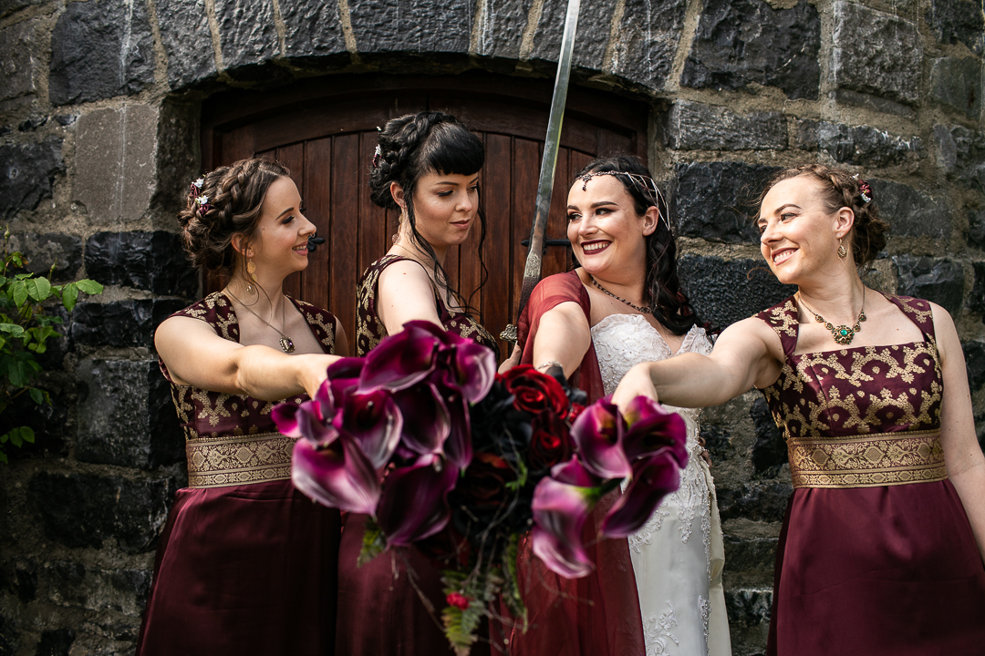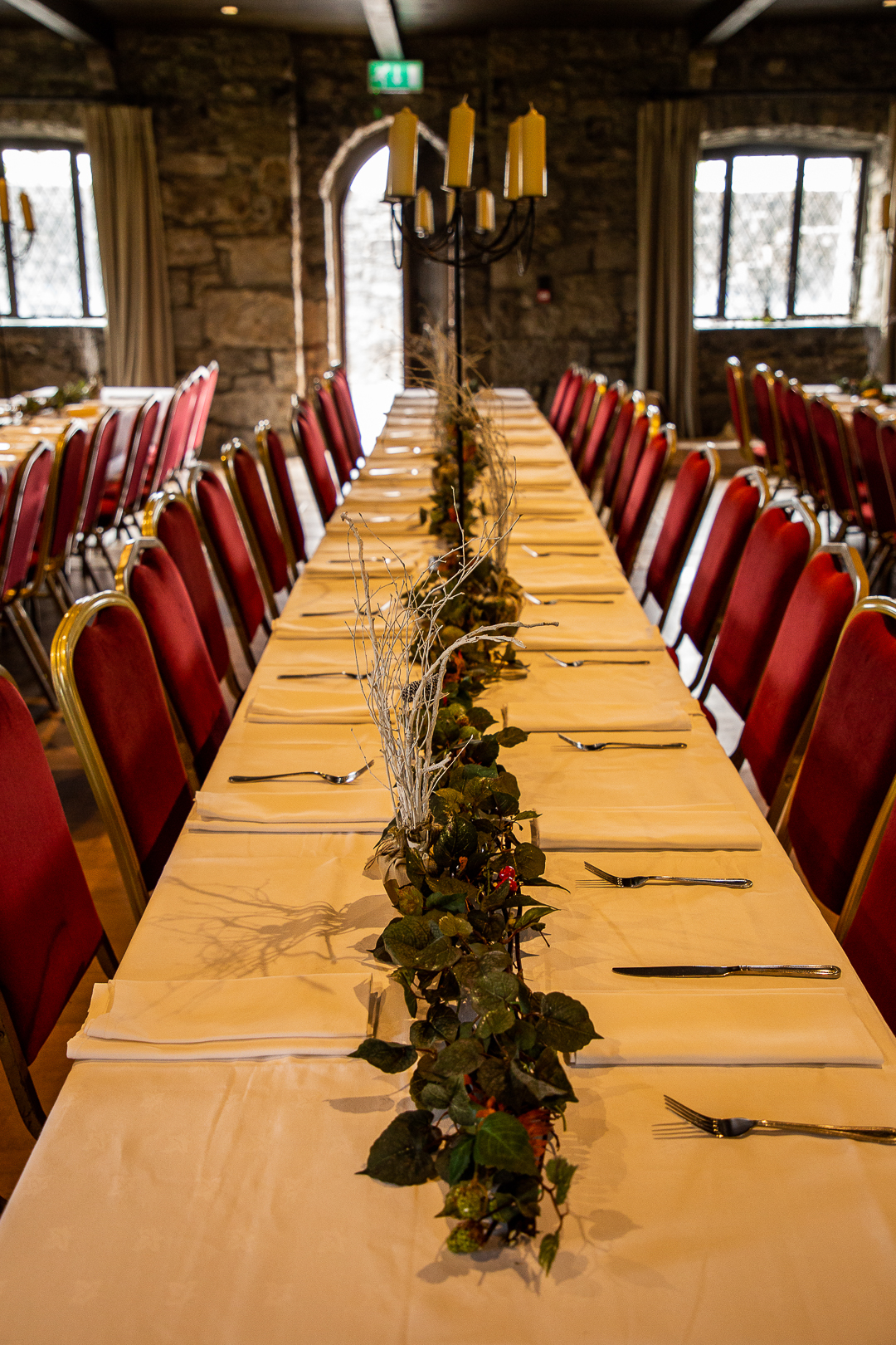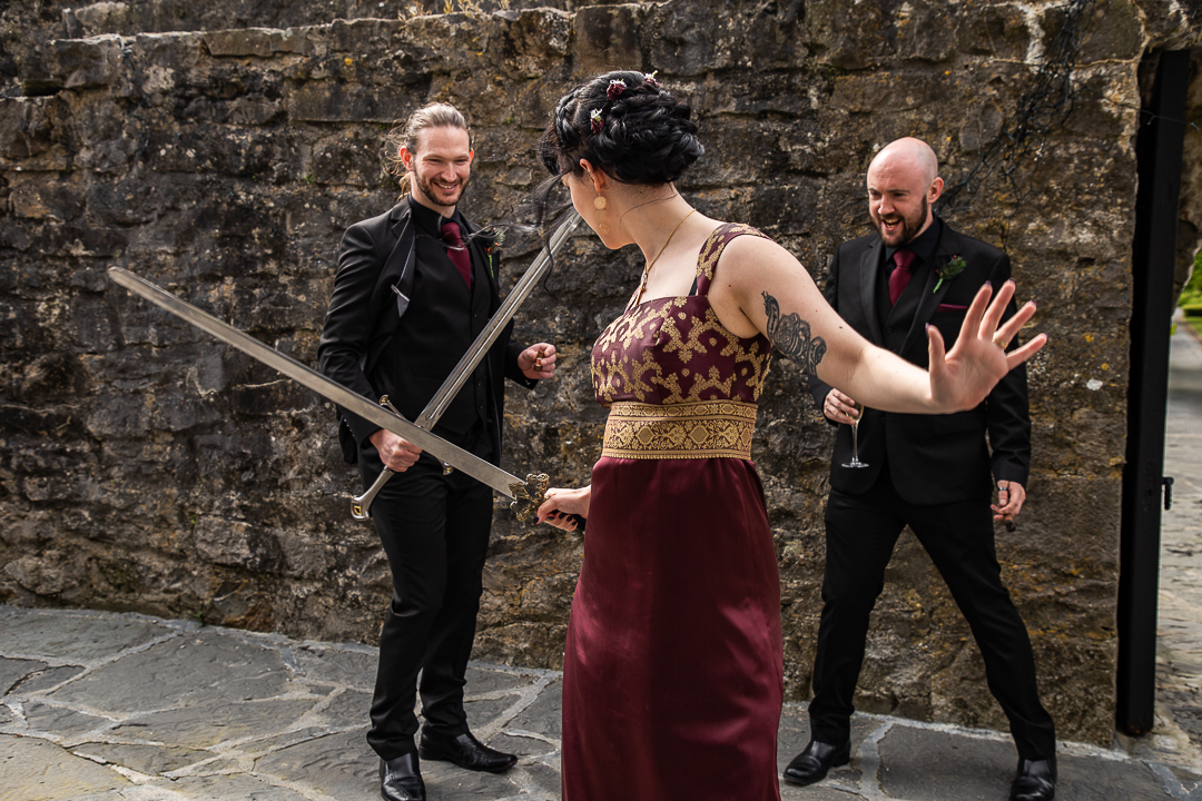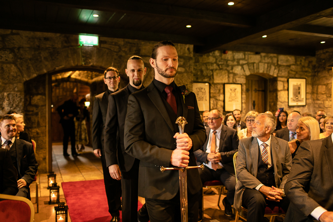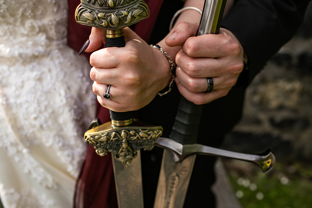 We didn’t have a specific theme, but the castle definitely inspired some elements of our wedding. I had bought Craig a replica sword from Lord of the Rings as an engagement present, as we had a running joke that if I got a nice ring he should get something too. I got my own sword when we visited the Leeds Armory Museum last year. We decided to include these in the day as there is a Viking tradition to exchange swords at your wedding as a promise to protect each other. Also, the expression “Best Man” originally meant your best swordsman, who would protect you from attackers on the day. So our Best Man and Maid of Honour carried our swords for the day, and did an excellent job protecting us.
