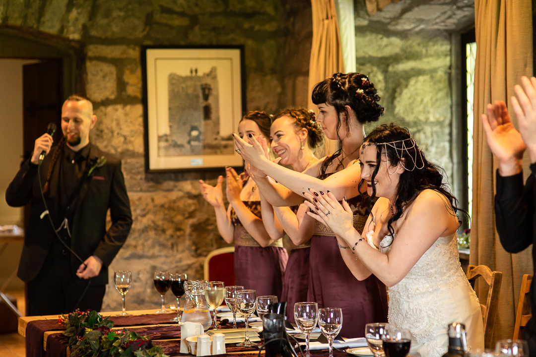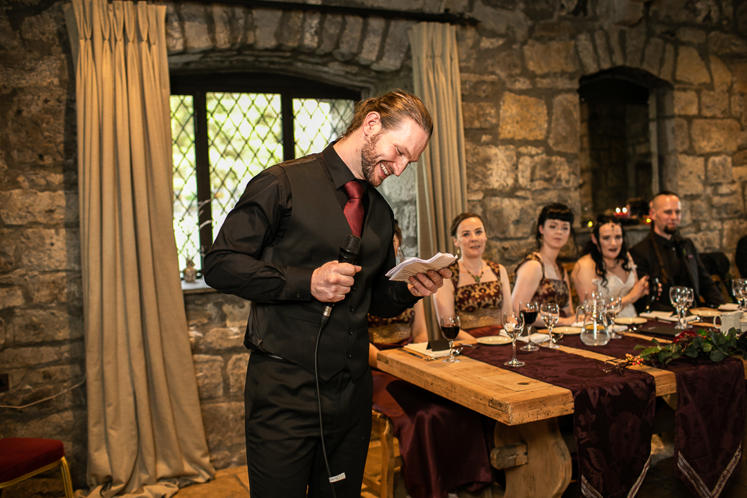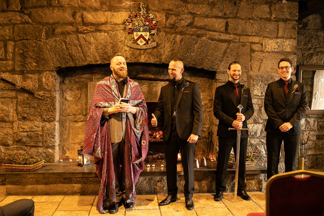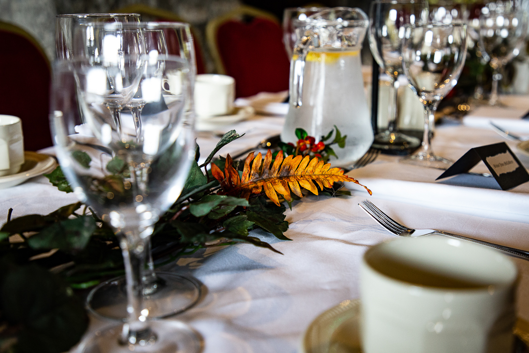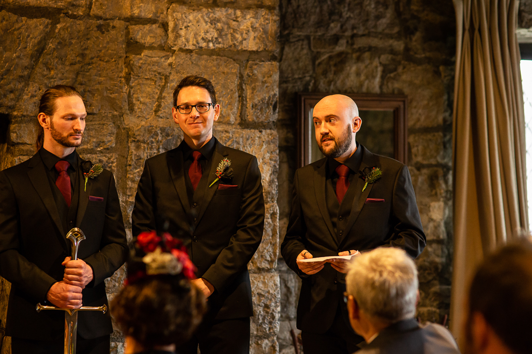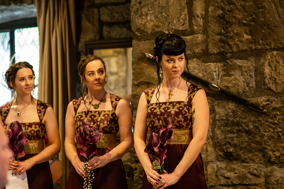 We didn’t have a specific theme, but the castle definitely inspired some elements of our wedding. I had bought Craig a replica sword from Lord of the Rings as an engagement present, as we had a running joke that if I got a nice ring he should get something too. I got my own sword when we visited the Leeds Armory Museum last year. We decided to include these in the day as there is a Viking tradition to exchange swords at your wedding as a promise to protect each other. Also, the expression “Best Man” originally meant your best swordsman, who would protect you from attackers on the day. So our Best Man and Maid of Honour carried our swords for the day, and did an excellent job protecting us.