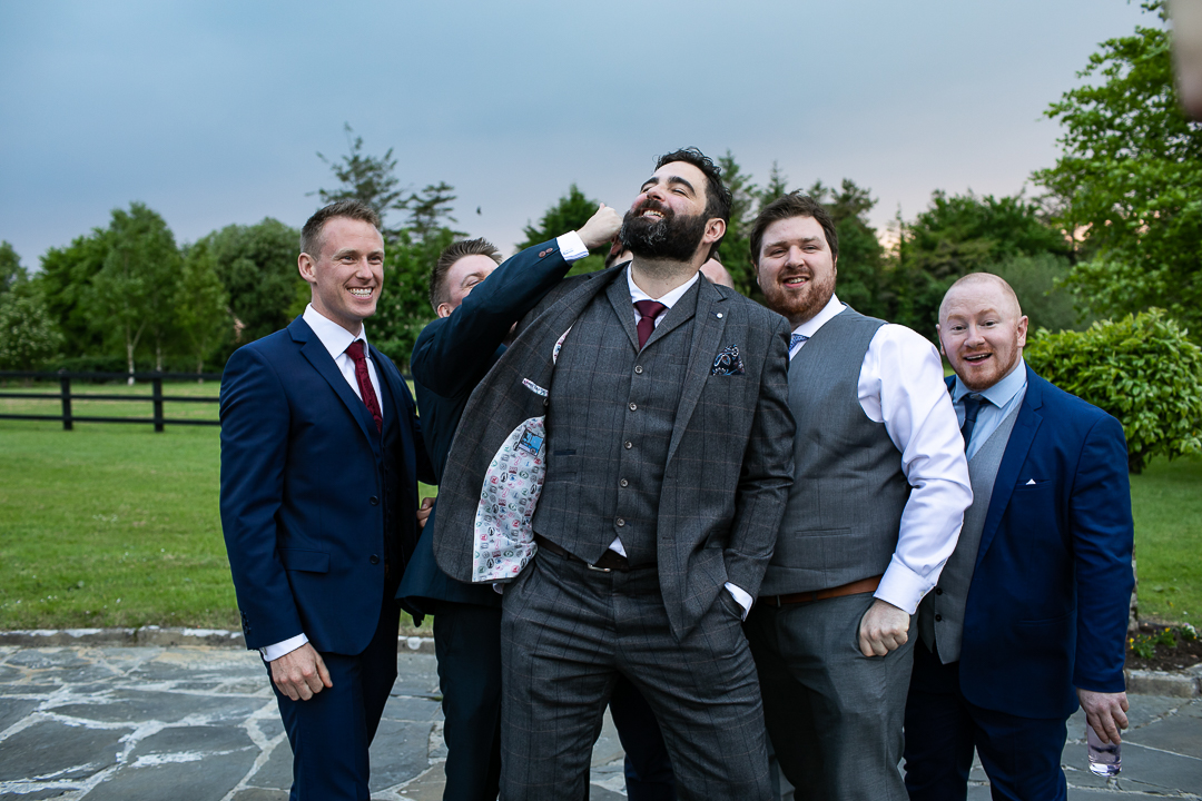 • Groom(smen)’s suits: The Groom’s suit was from Hugo Boss, and the Groomsman’s suits were from M&S
