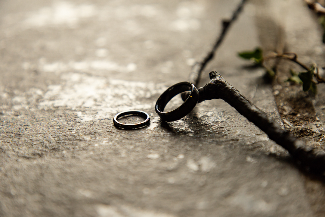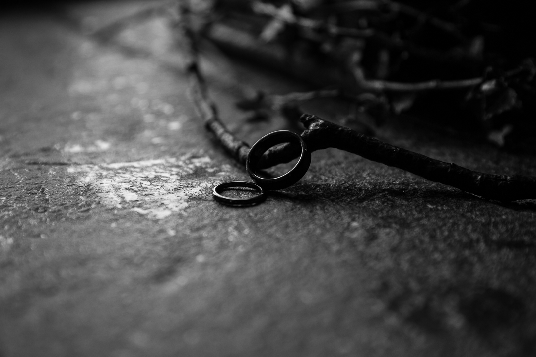 Our wedding rings were ceramic rings bought online for about €10. I made my headdress myself.