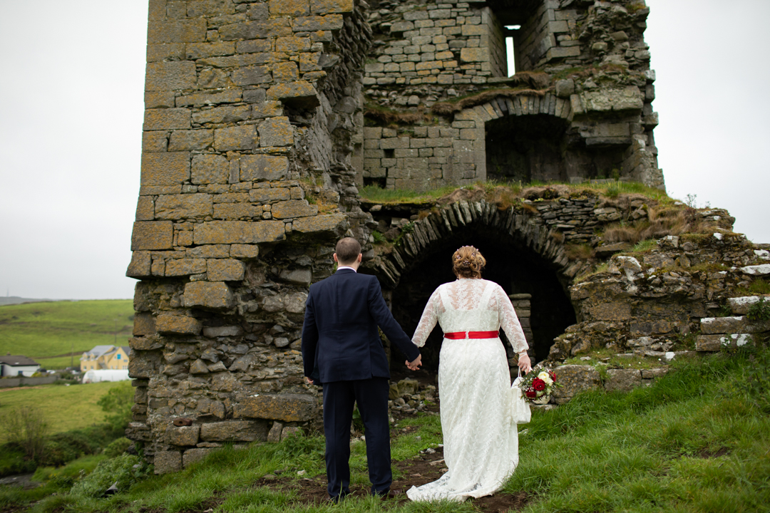 Private Elopement in Ireland, Handfasting Ceremony In Ruined Doonmacfelim Castle – Doolin E&J