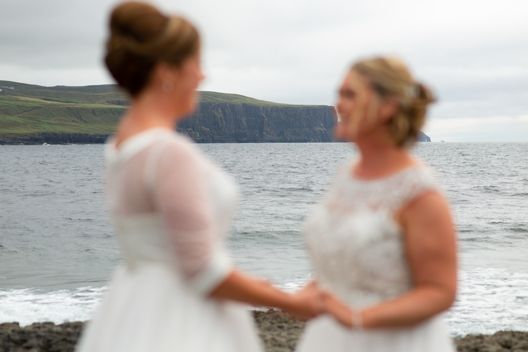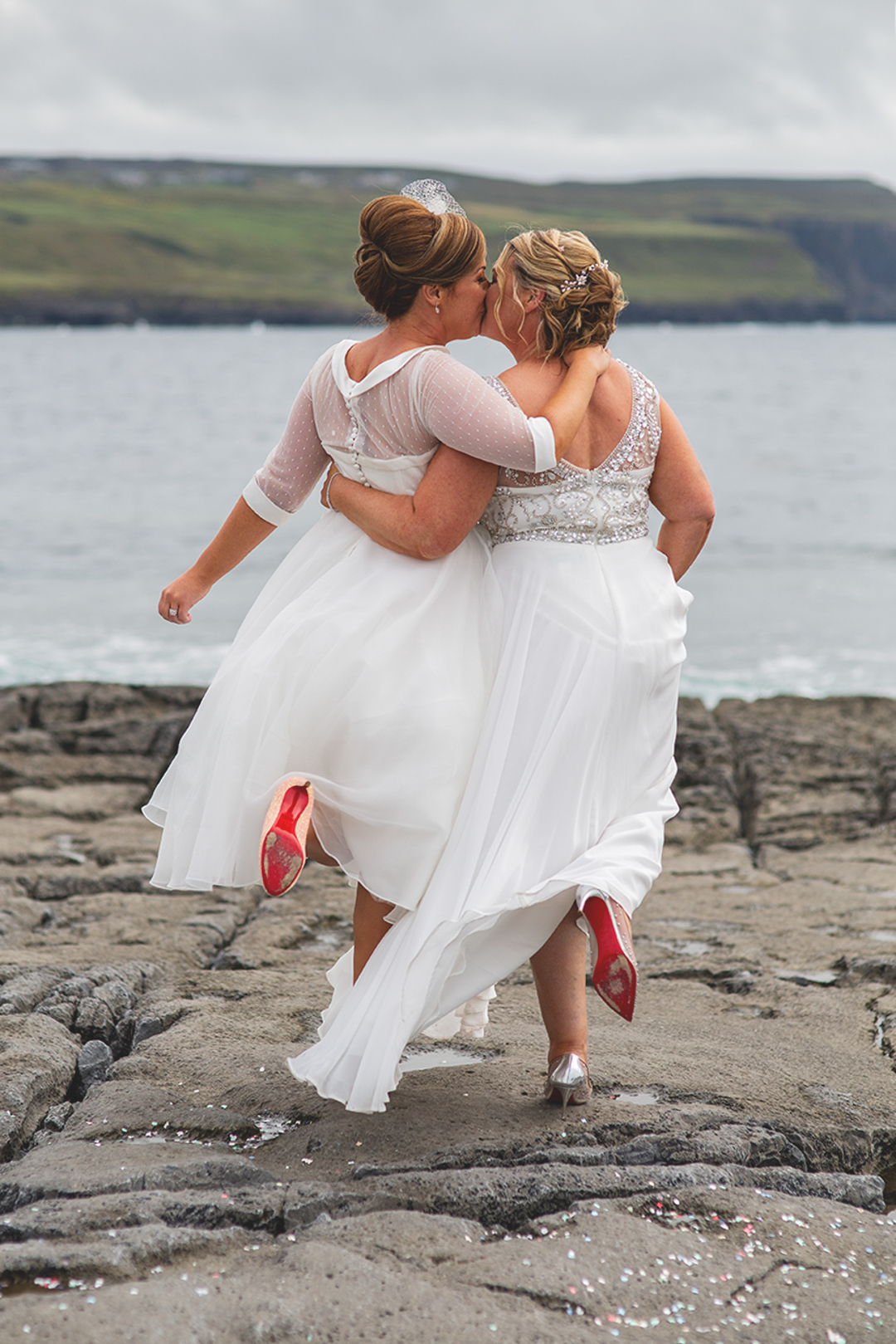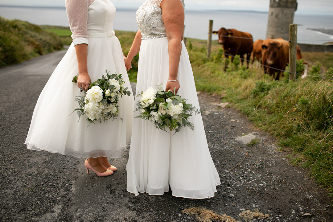 One of our nieces came up with the idea to get Pride Wing Mirror Covers for family and friends arriving in Doolin, two days before the big day. She’d packaged them up with a label saying “Keep an eye out for others on your drive to Doolin. Beep Beep!” It was the most exciting journey ever, looking out for pride flags coming from all different directions on the motorway and the country roads… The end result was a convoy of cars with pride flags arriving into Doolin on the same day as us. It was such fun! The Hotel had the pride flag up outside all week; and for the two days before the wedding, our families and friends were sporting different versions of flags whether it was on their jumper, their runners, their kids or even on their dogs… Loved it all!