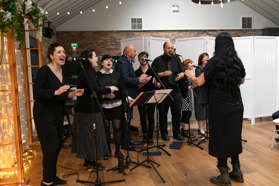 We walked into ‘Lovely Day’, followed by ‘Amazing Grace’, ‘This Little Light of Mine’, ‘Your Love Keeps Lifting Me’, ‘Aint No Mountain High Enough’, ‘Signed, Sealed, Delivered’, ‘Forever Young’, and then left to ‘Oh Happy Day’… The Inishowen Gospel Choir nailed every one. Col’s Mam & Dad are not with us any longer and we figured if we had very emotional music during the ceremony, we’d lose our composure… so we wrote to Inishowen Gospel Choir and begged them to bring some soul to the day. They travelled 5 hours (one way) and lifted everyone’s spirits. Instead of tears of sadness, there were tears of joy and they raised the roof with their harmonies. They were just magical and created such a happy and joyful vibe to the day.