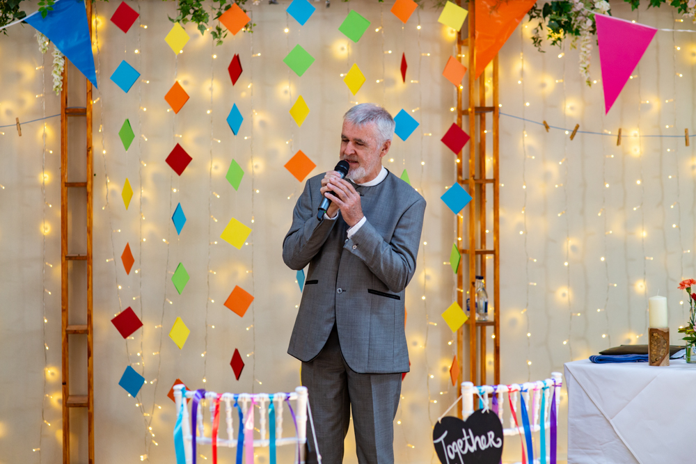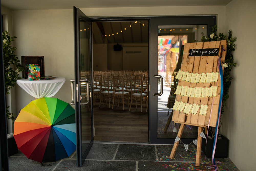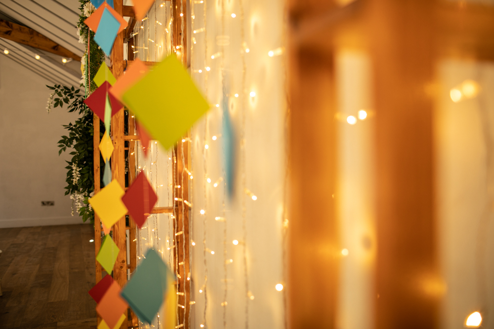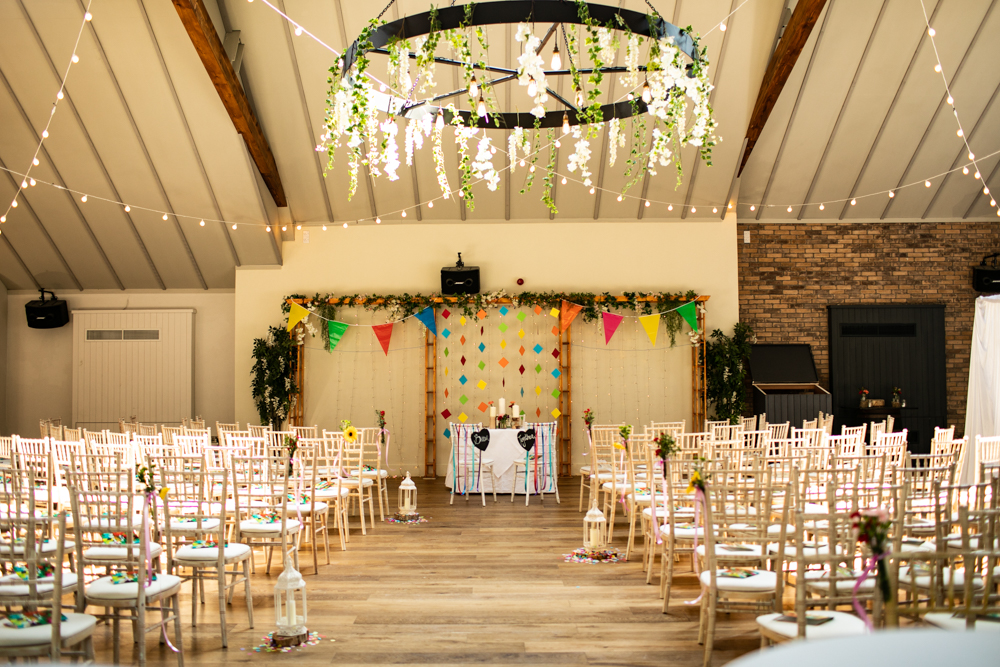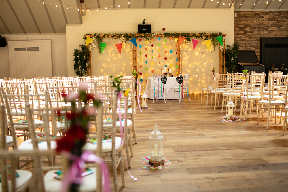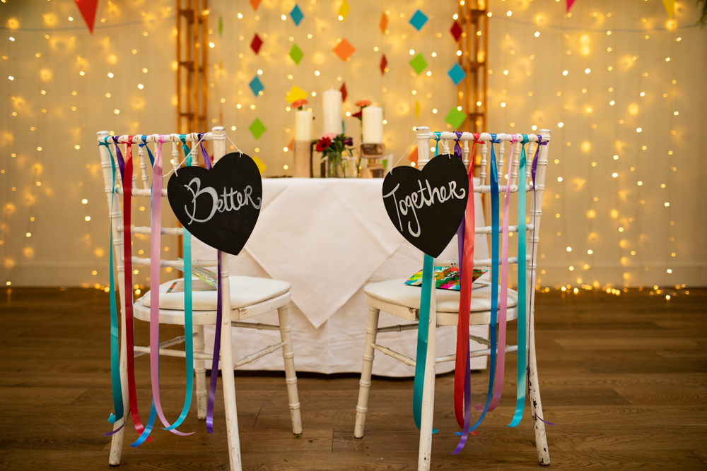 Colourful & comfortable. We both love colour and wanted to make sure everything about our wedding was colourful and cheerful. We were also keen that all our guests were comfortable throughout the day.