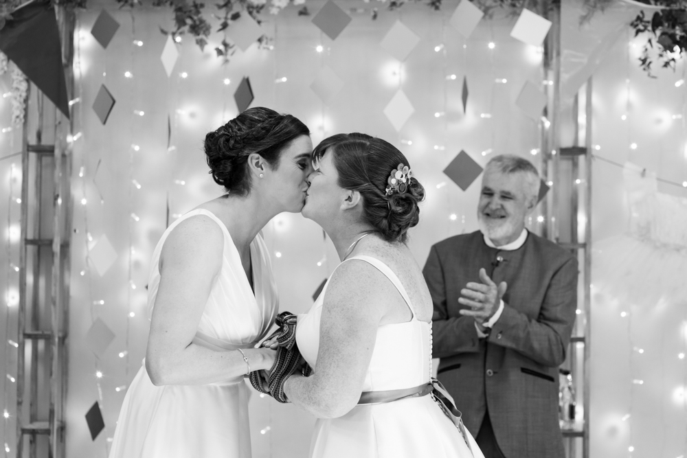 Fun loving rugby players tie the knot on west coast of Ireland – Lisa and Ruth’s emotional wedding in the Barn
