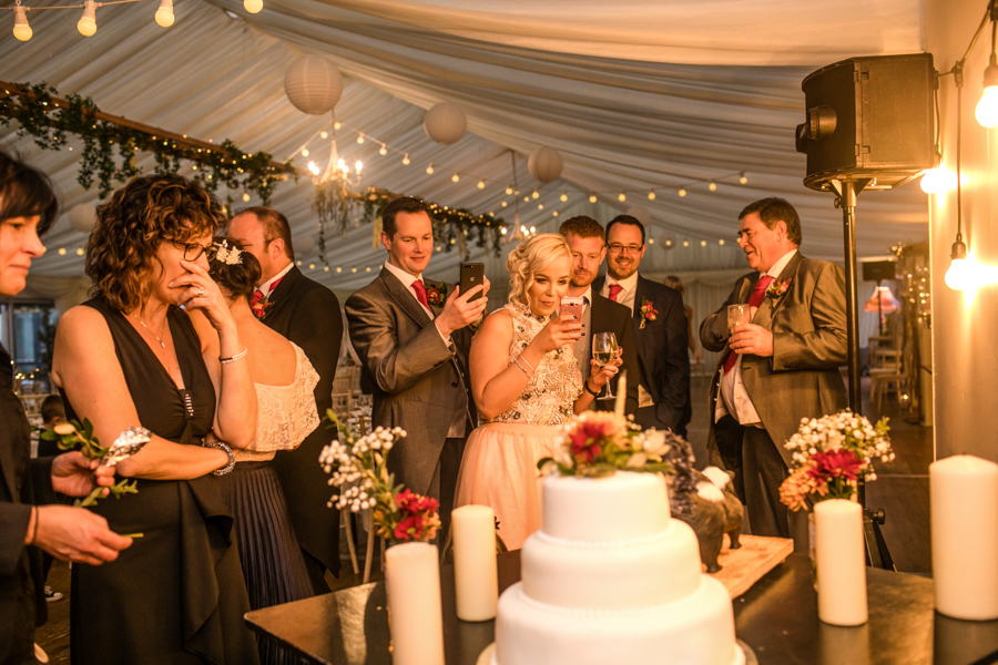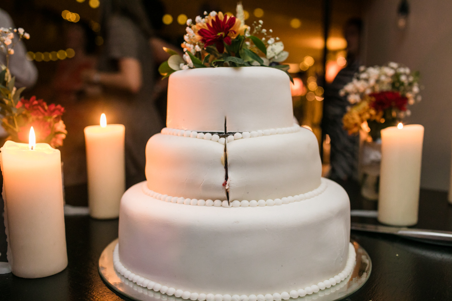 Ben: Seeing everyone’s reaction to our unconventional wedding cake.