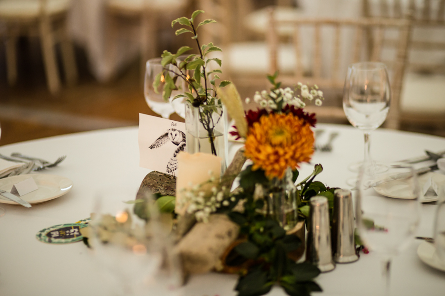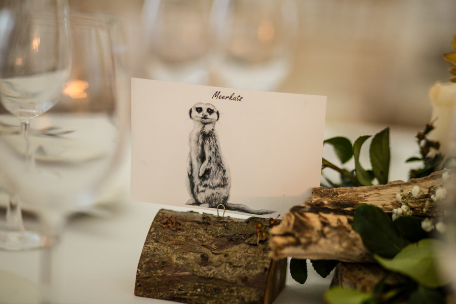 Being November, we decided to go for an autumn type theme with much of the décor being natural autumnal colours. We also had a bit of an animal theme too with the cake, table names, etc as, owning our own little zoo, we wanted the day to represent our lives a bit.