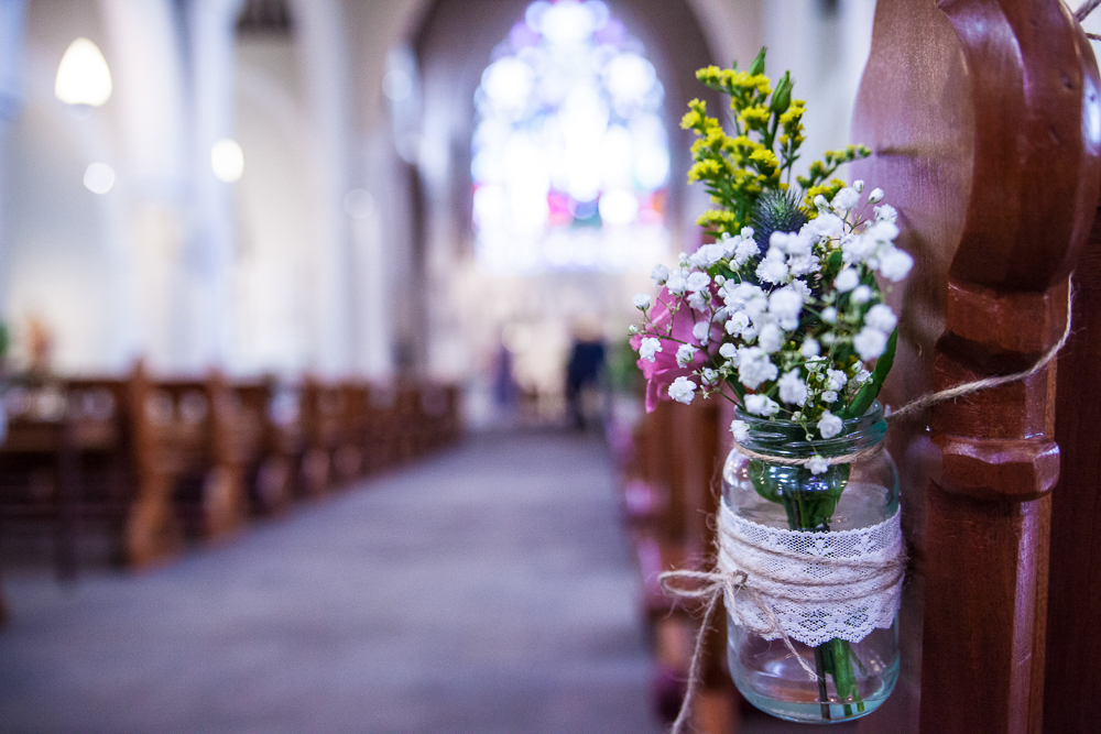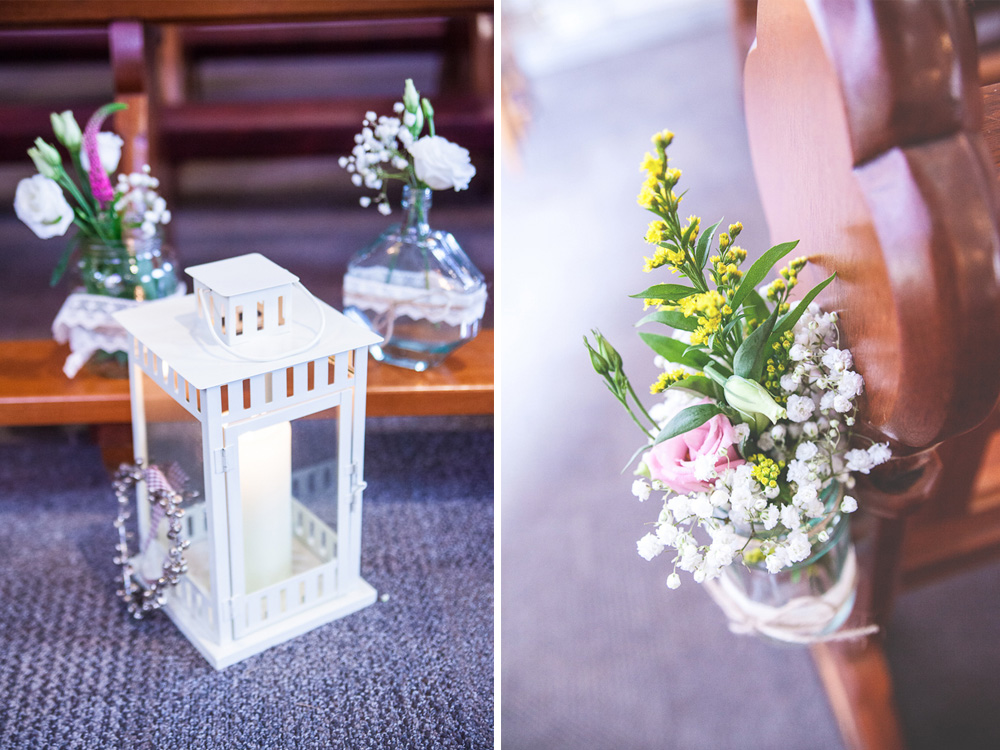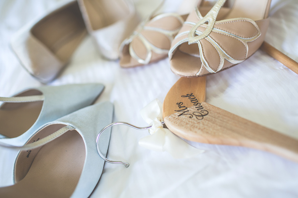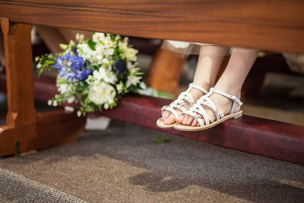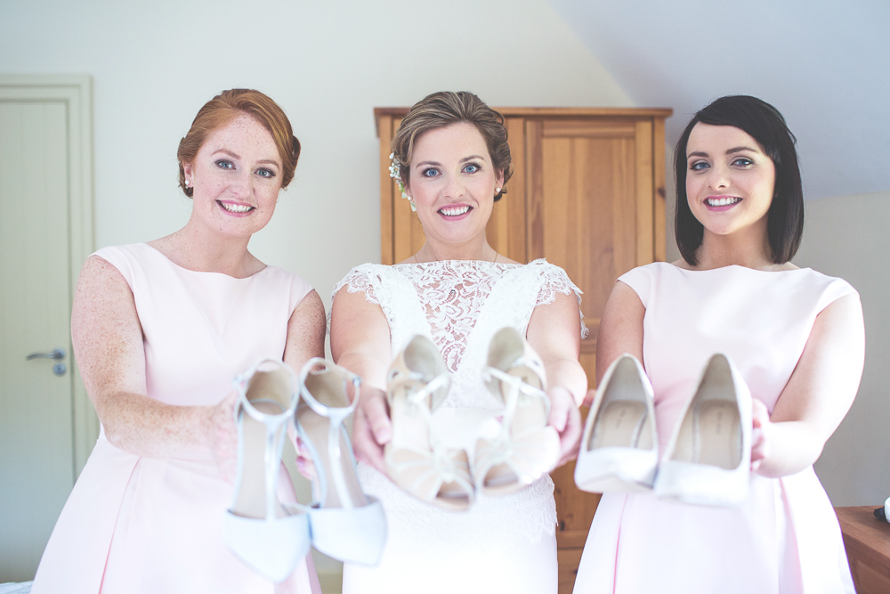 Accessories for female bridal party: The bridesmaids ordered their shoes from ASOS, velvet baby blue and sparkly blush pink. Cool! I wore fresh flowers in my hair.