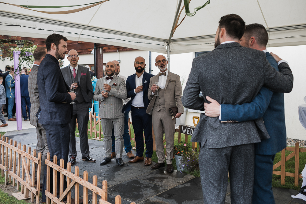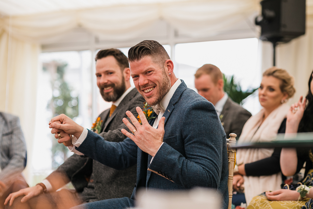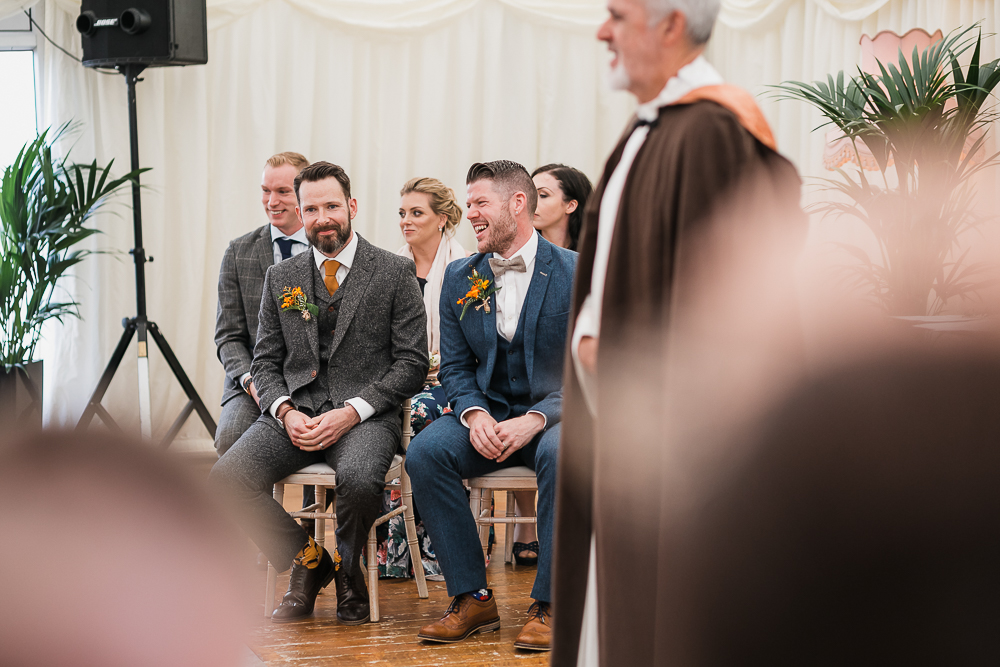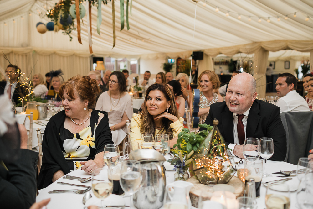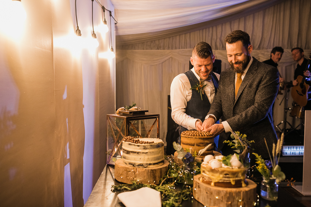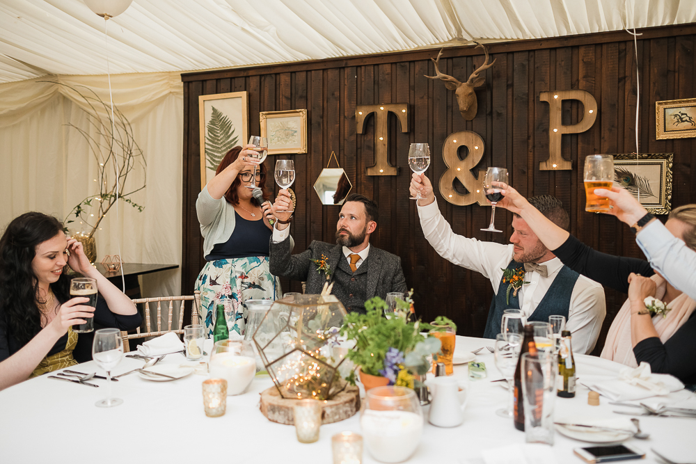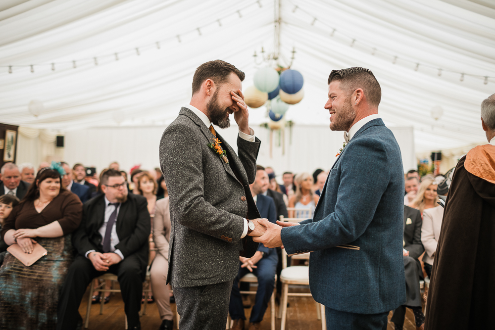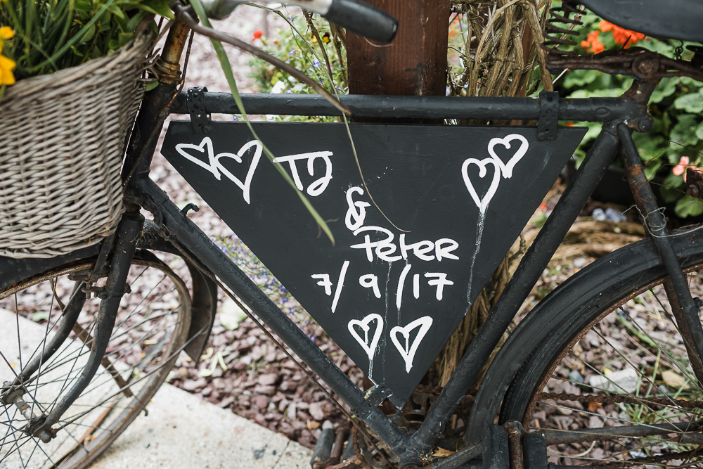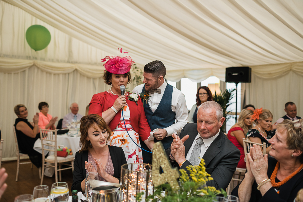 We had a humanist ceremony in the Hotel marquee. Our celebrant Dara was great to deal with and allowed us to make the ceremony our own. We had readings from TJ’s sister, Elaine, and Pete’s brother, Robert. It turned out to be a very emotional ceremony, which was not what we expected. We also incorporated a tree potting in to the ceremony. Our mothers both brought a pot of soil from their gardens. They added this together around the roots of a small apple tree, which we will plant on in years to come. It made the occasion really special and lots of people commented on how lovely it was.