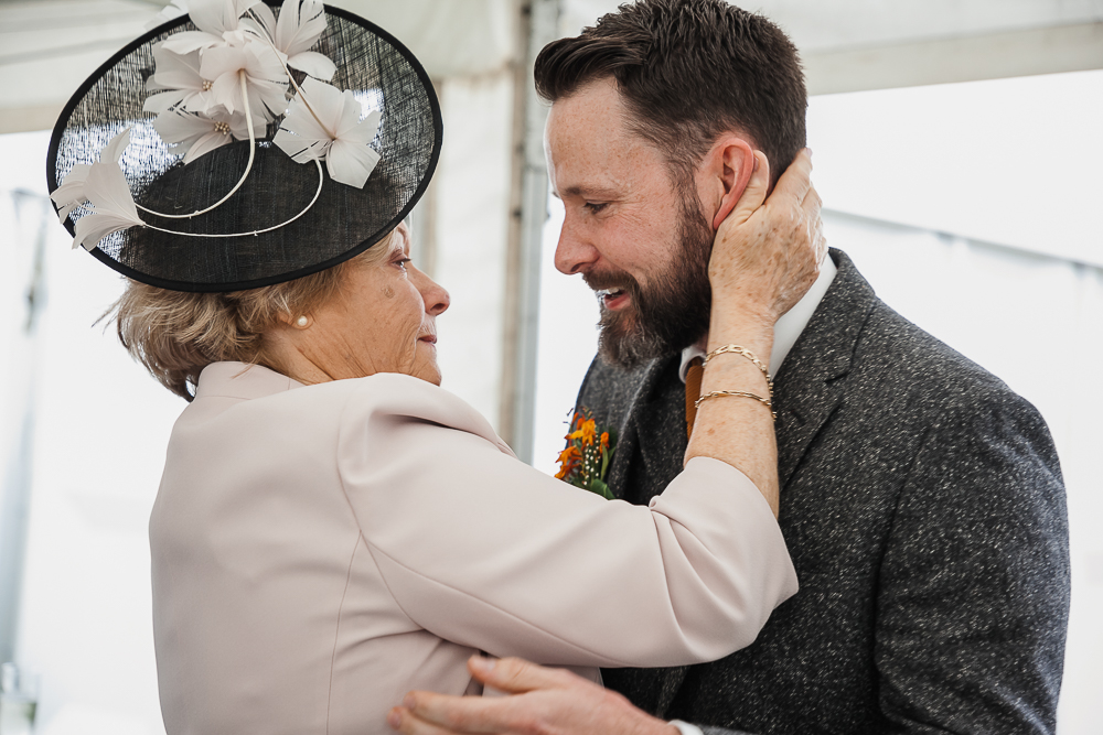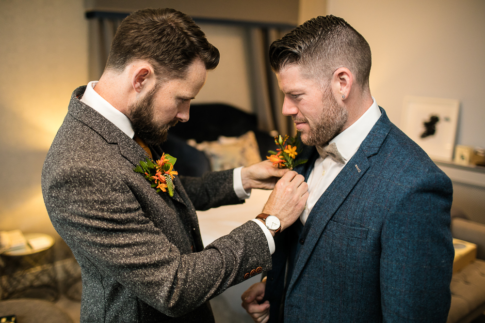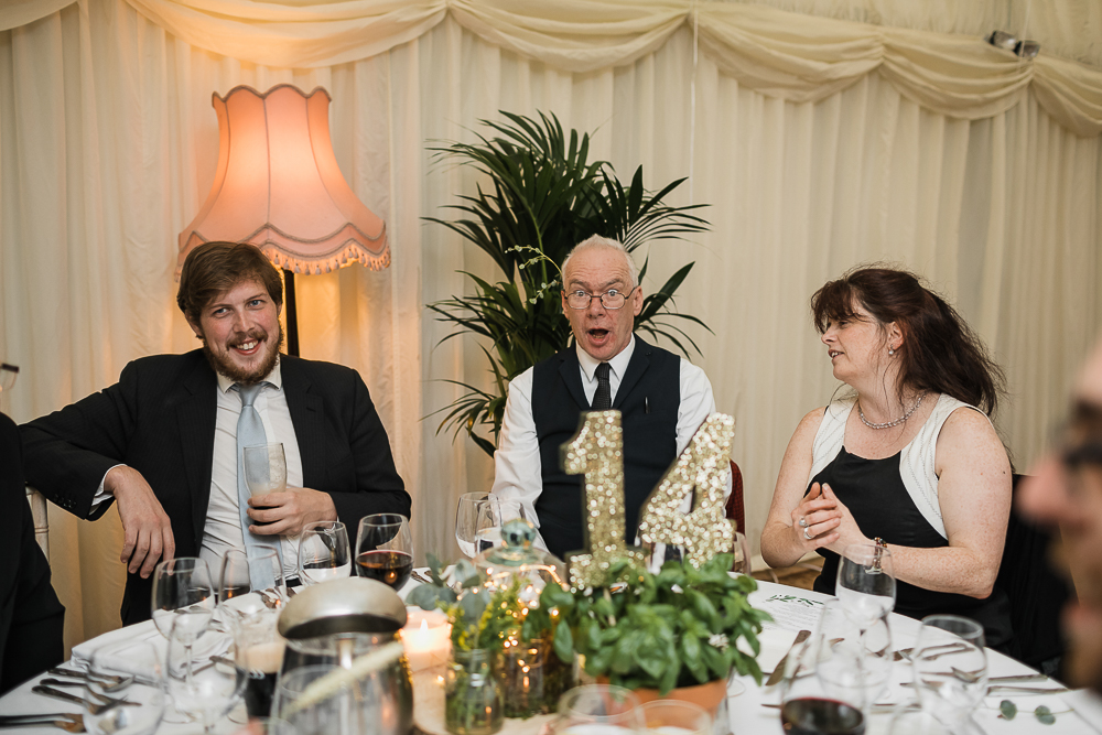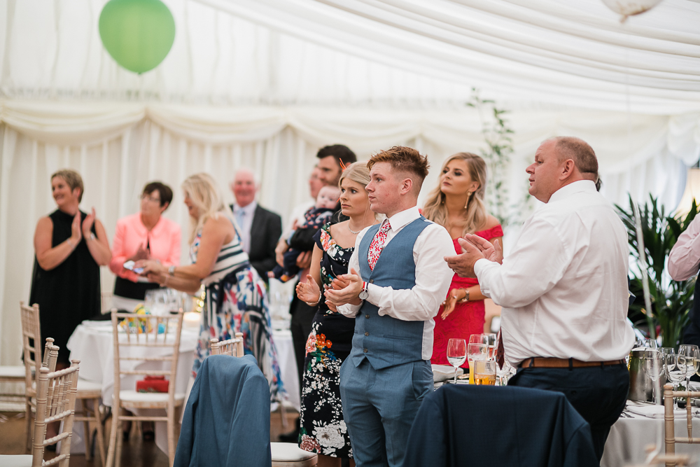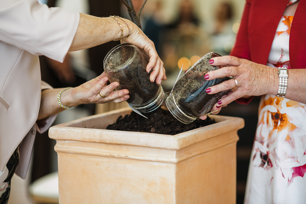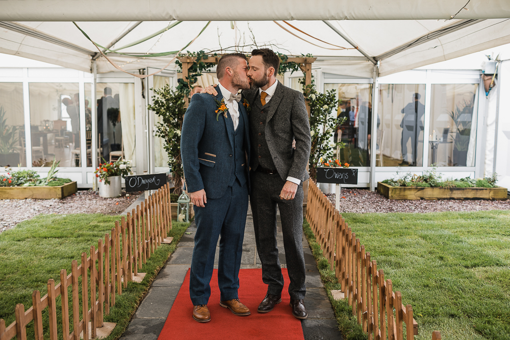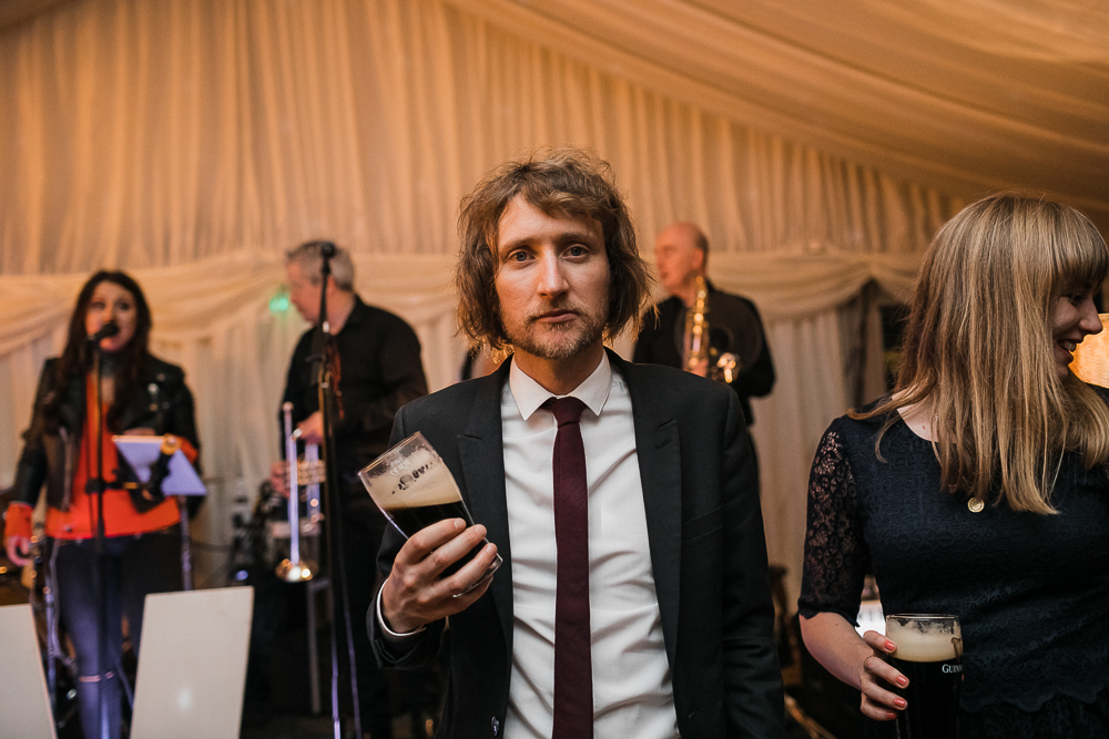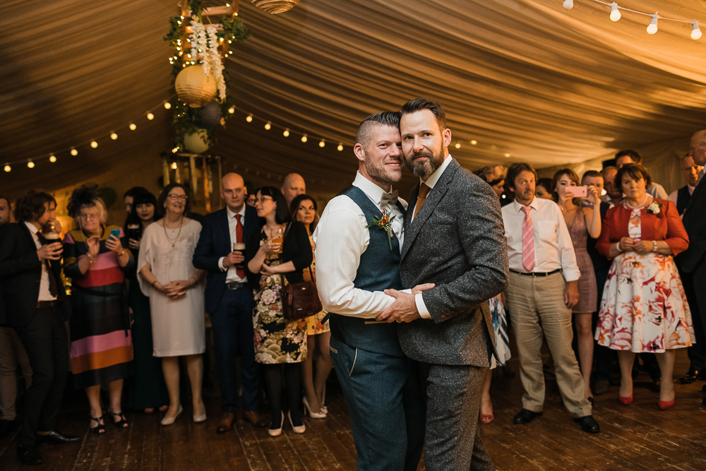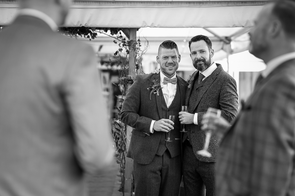 We had a humanist ceremony in the Hotel marquee. Our celebrant Dara was great to deal with and allowed us to make the ceremony our own. We had readings from TJ’s sister, Elaine, and Pete’s brother, Robert. It turned out to be a very emotional ceremony, which was not what we expected. We also incorporated a tree potting in to the ceremony. Our mothers both brought a pot of soil from their gardens. They added this together around the roots of a small apple tree, which we will plant on in years to come. It made the occasion really special and lots of people commented on how lovely it was.
